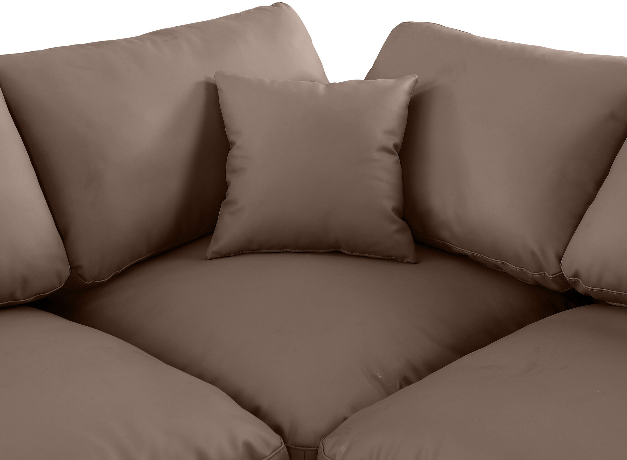 Transform your living area into a modern sanctuary of comfort with our elegant Brown Comfy Vegan Leather Sectional. This contemporary piece is a harmonious addition to the Comfy collection, offering a sophisticated and flexible seating solution to elevate your home decor. Crafted with the utmost care, the sectional is upholstered in premium vegan leather that is not only durable but also eco-friendly, making it a conscientious choice for the stylish homeowner.Experience unparalleled comfort as you sink into the luxuriously overstuffed cushions filled with down feathers, designed to cradle your body in a soft, supportive embrace. The sectional's robust foam padding wraps around its sturdy frame, ensuring every moment of relaxation is a blissful escape from the day's stresses.