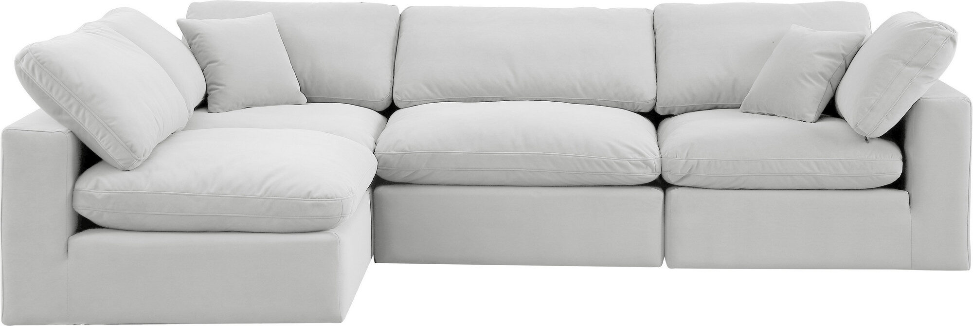 Transform your living area into a haven of luxury with the sleek and sophisticated cream Comfy velvet sectional. This contemporary piece of furniture is the epitome of versatility and elegance, seamlessly integrating with the rest of the Comfy collection to elevate your decor. The sectional's sumptuous velvet upholstery, in an elegant cream hue, is not only durable but also exudes an air of opulence.Sink into the lavish comfort of the overstuffed down feather cushions, meticulously designed to offer an unparalleled seating experience. The sectional's robust frame is encased in dense foam, ensuring both support and an inviting softness that beckons you to unwind. Whether you're lounging after a long day or entertaining guests, this sectional promises relaxation without compromising on style.