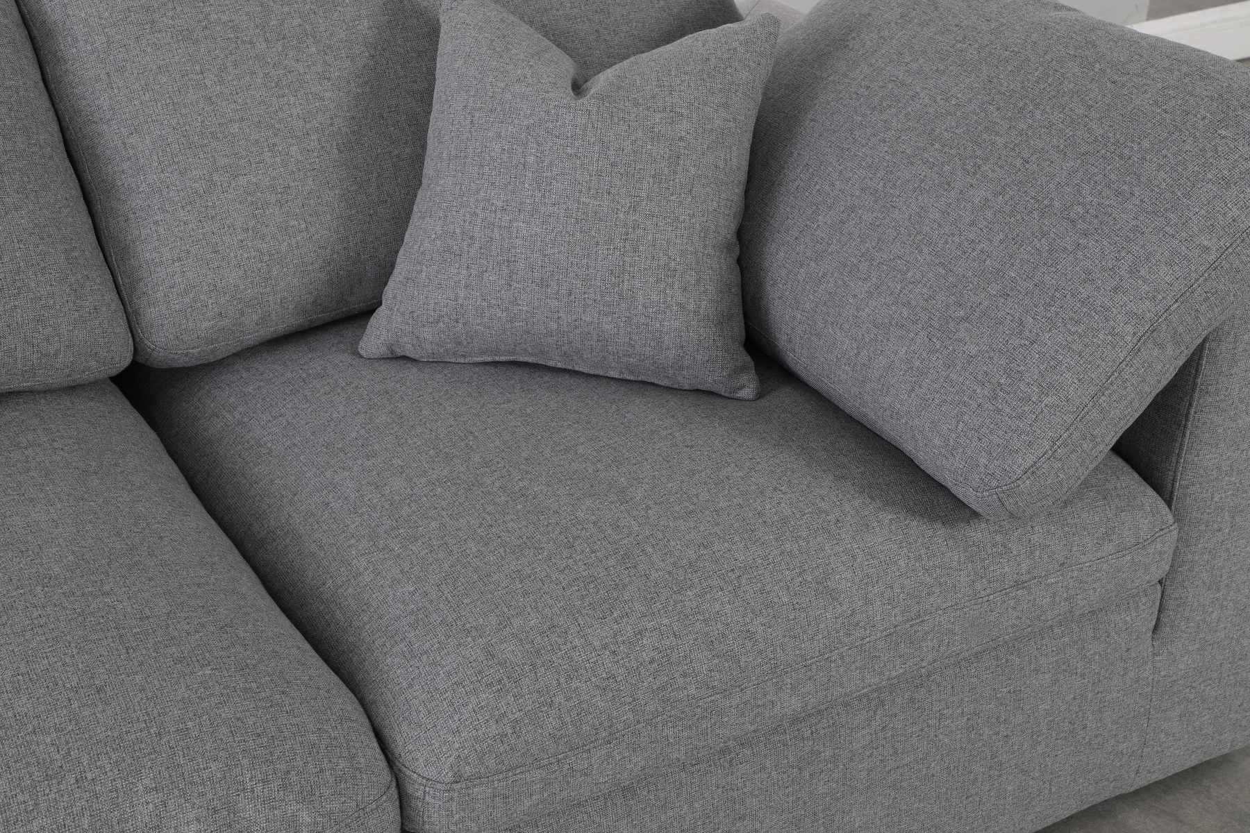 Upholstered in soft, durable linen fabric, the Serene sectional promises to be as comfortable as it is stylish. The overstuffed down feather cushions beckon you to sink in and relax, offering an unrivaled level of coziness. Assembly is a breeze, thanks to the user-friendly attachment latch located underneath each piece.