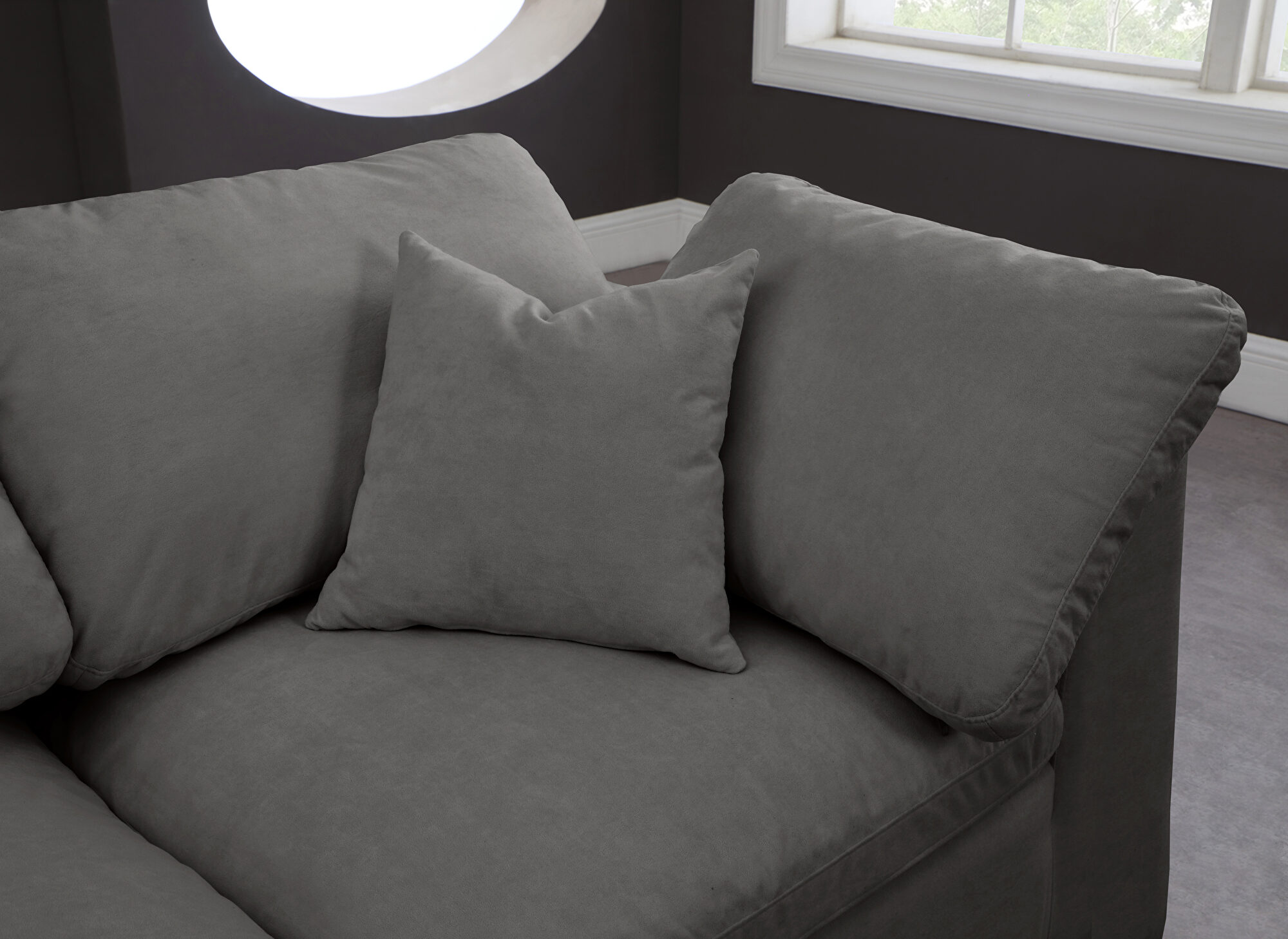 Plush gray velvet modular comfort