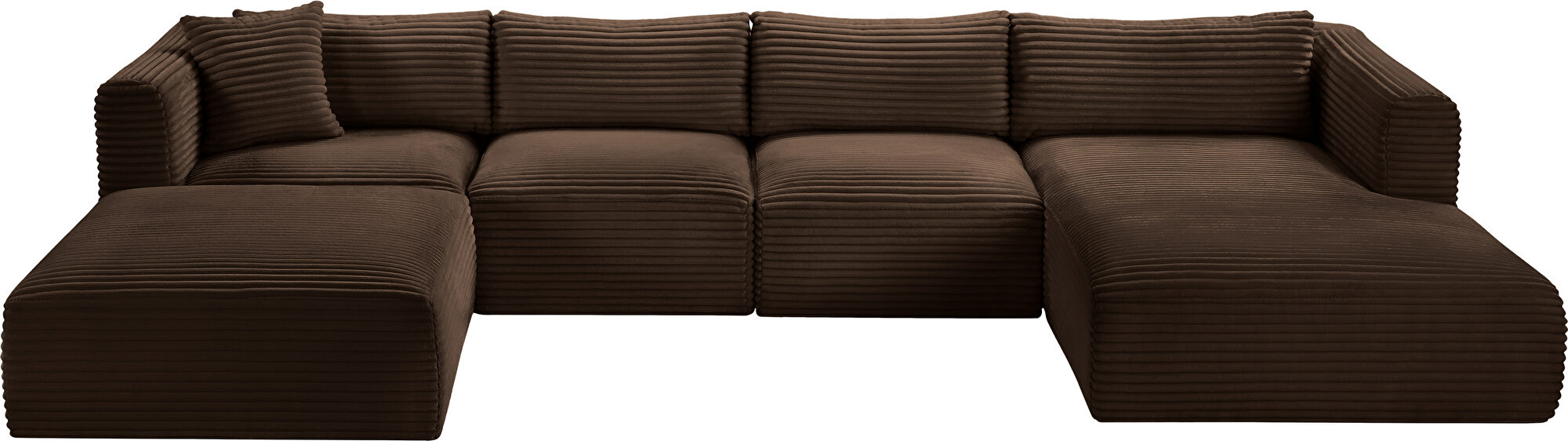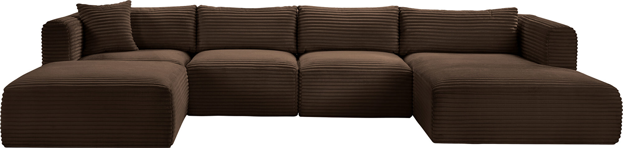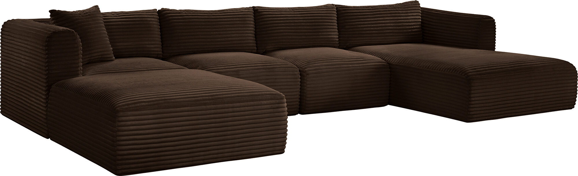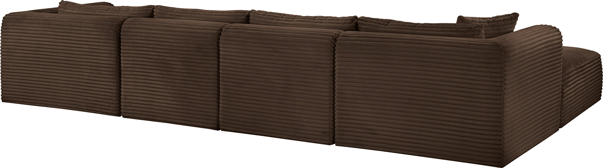 Elevate your living space with the Shaggy Brown Corduroy Modular 5pcs Sectional (1 wedge, 1 chaise, 1 ottoman & 2 armless chairs), where luxury meets functionality. Draped in a sumptuous, soft furry-textured corduroy fabric, this sectional invites you to experience comfort like never before. The bold, 1-inch-wide corduroy wales add a contemporary edge to its appearance, making a statement in any room.Crafted for both sophistication and endurance, the sectional's high-performance fabric offers peace of mind with its water-repellent and stain-resistant properties, preserving the sectional's allure for years to come. Sink into the plush foam seating, meticulously designed to provide a supportive and cozy retreat after a long day.