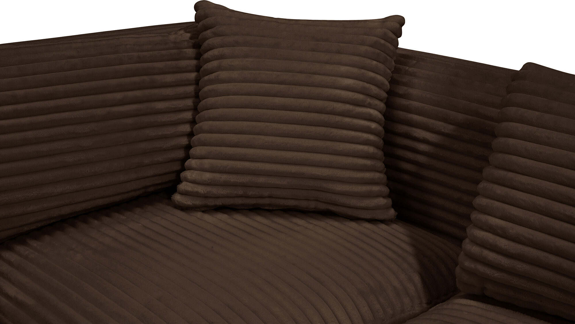 Elevate your living space with the Shaggy Brown Corduroy Modular 6pcs Sectional (4 armless chairs and 2 wedges), where luxury meets functionality. Draped in a sumptuous, soft furry-textured corduroy fabric, this sectional invites you to experience comfort like never before. The bold, 1-inch-wide corduroy wales add a contemporary edge to its appearance, making a statement in any room.Crafted for both sophistication and endurance, the sectional's high-performance fabric offers peace of mind with its water-repellent and stain-resistant properties, preserving the sectional's allure for years to come. Sink into the plush foam seating, meticulously designed to provide a supportive and cozy retreat after a long day.