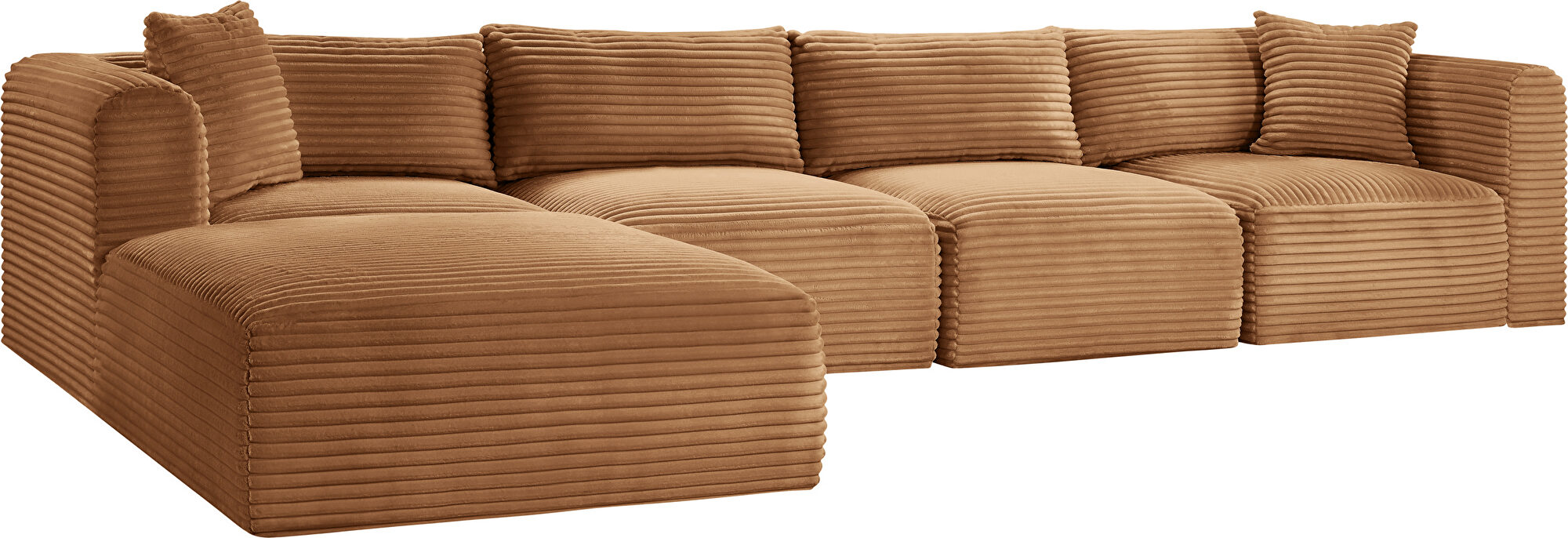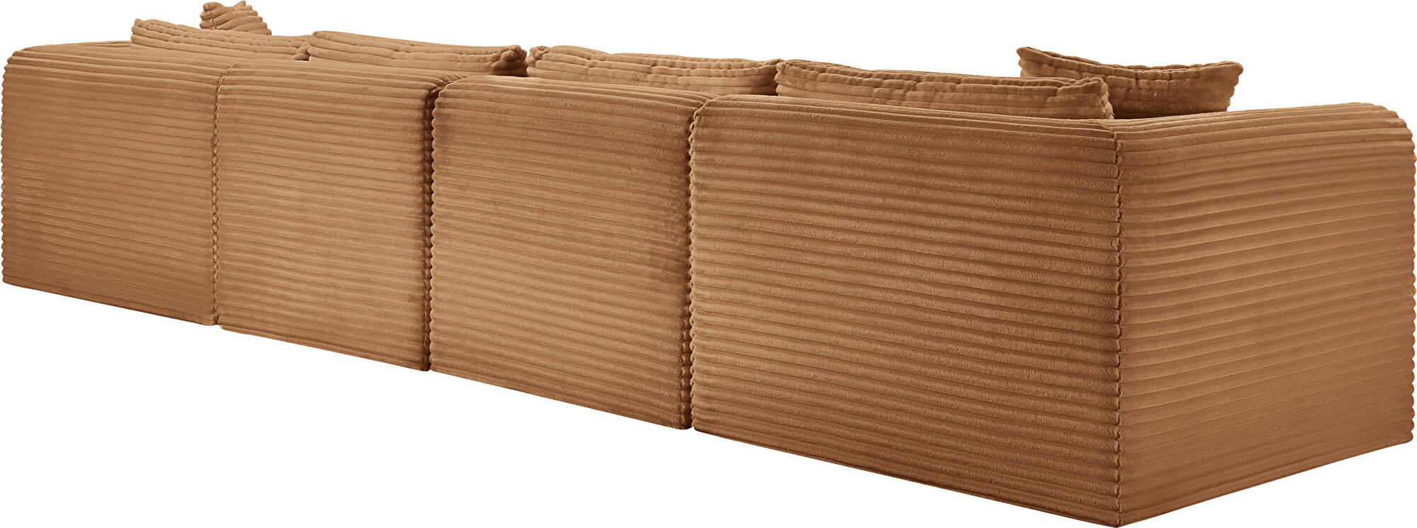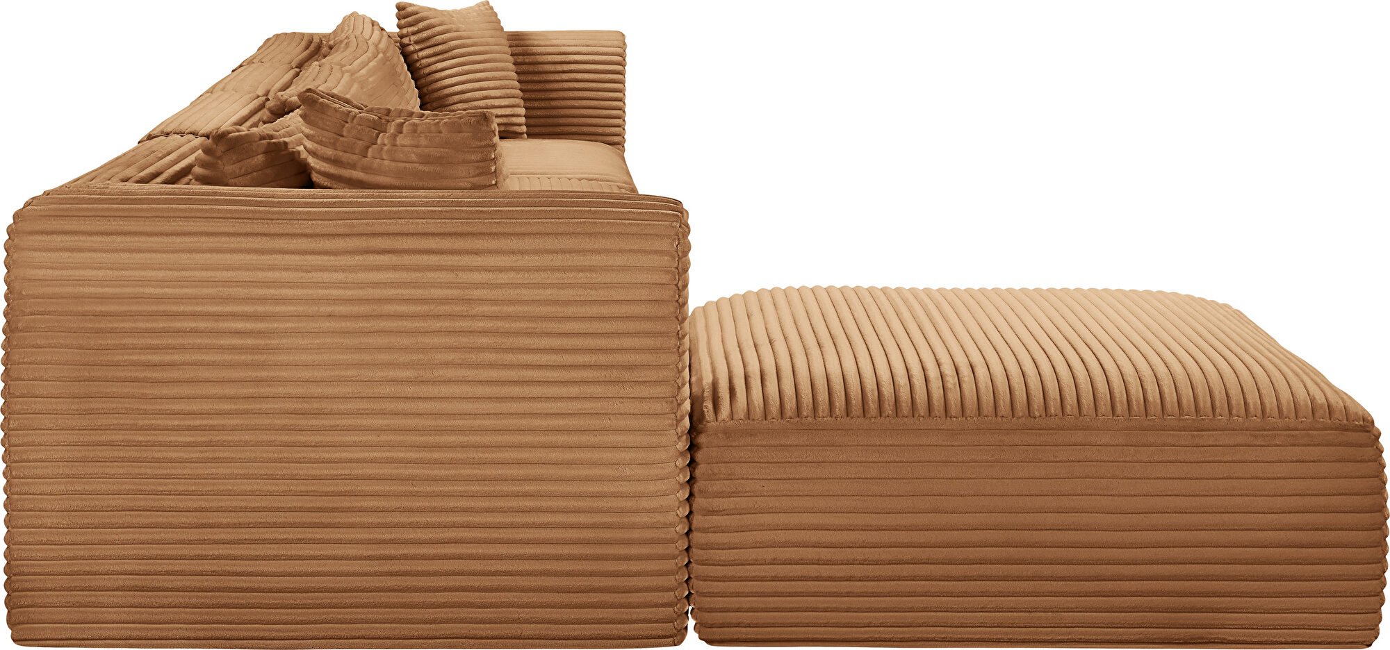 Elevate your living space with the Shaggy Saddle Corduroy Modular 5pcs Sectional (2 wedges, 2 armless chairs and 1 ottoman), where luxury meets functionality. Draped in a sumptuous, soft furry-textured corduroy fabric, this sectional invites you to experience comfort like never before. The bold, 1-inch-wide corduroy wales add a contemporary edge to its appearance, making a statement in any room.Crafted for both sophistication and endurance, the sectional's high-performance fabric offers peace of mind with its water-repellent and stain-resistant properties, preserving the sectional's allure for years to come. Sink into the plush foam seating, meticulously designed to provide a supportive and cozy retreat after a long day.