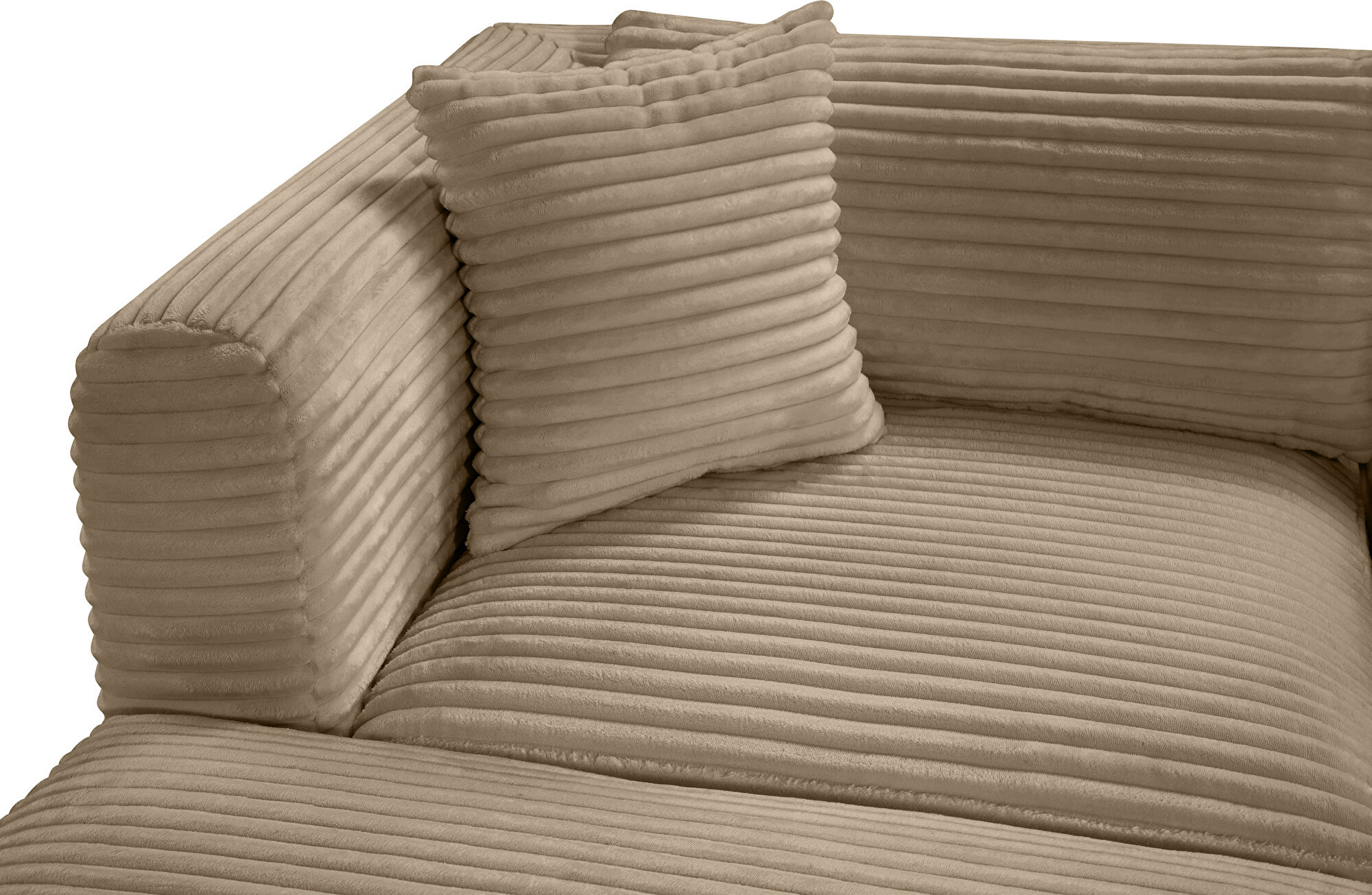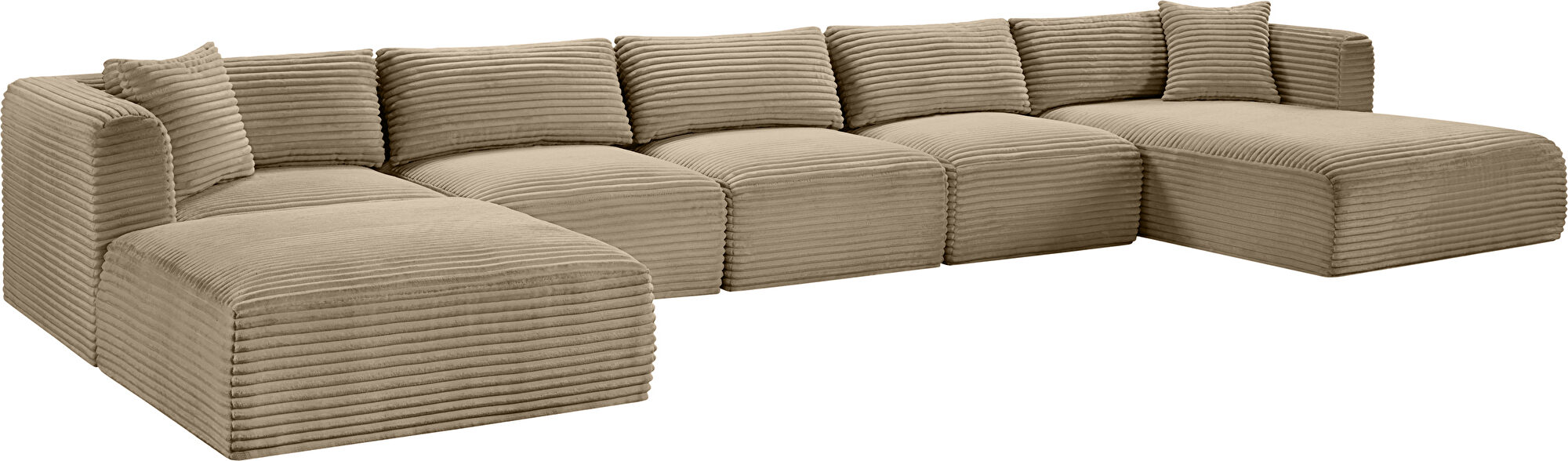Elevate your living space with the Shaggy Taupe Corduroy Modular 6pcs Sectional (3 armless chairs, 1 ottoman, 1 chaise and 1 wedge), where luxury meets functionality. Draped in a sumptuous, soft furry-textured corduroy fabric, this sectional invites you to experience comfort like never before. The bold, 1-inch-wide corduroy wales add a contemporary edge to its appearance, making a statement in any room.Crafted for both sophistication and endurance, the sectional's high-performance fabric offers peace of mind with its water-repellent and stain-resistant properties, preserving the sectional's allure for years to come. Sink into the plush foam seating, meticulously designed to provide a supportive and cozy retreat after a long day.