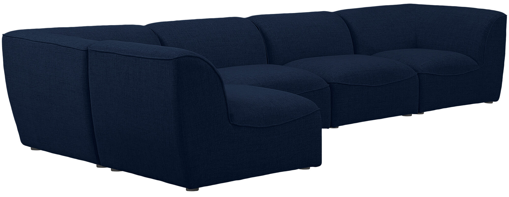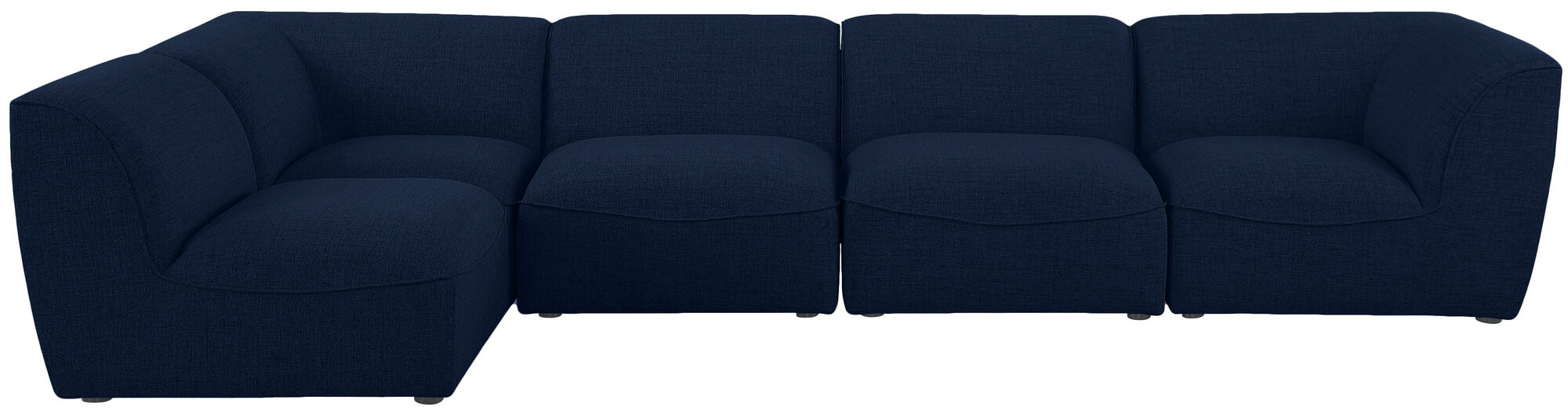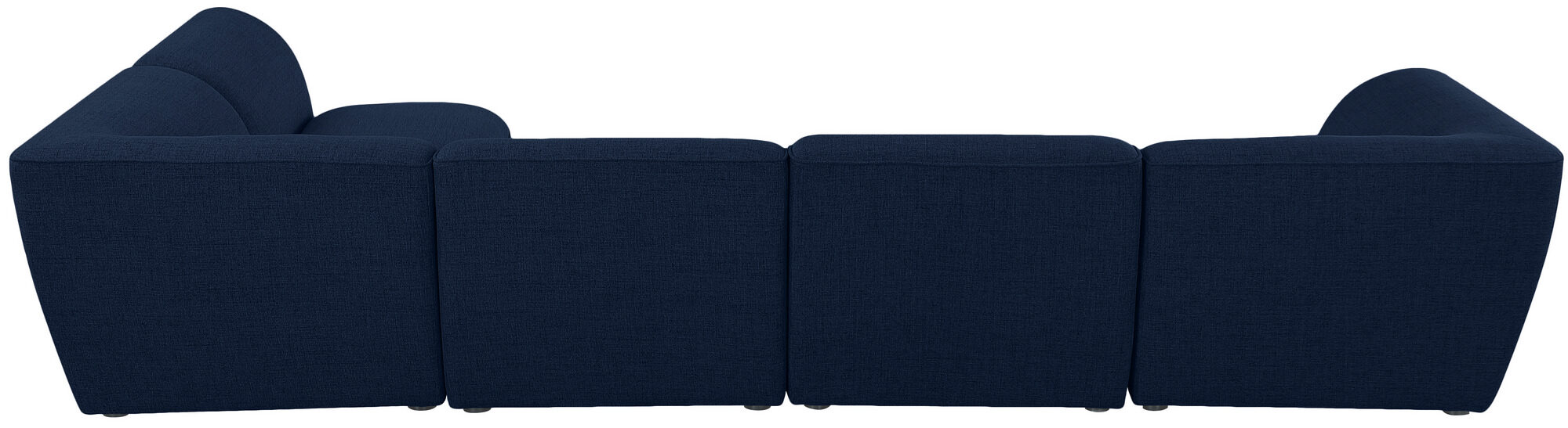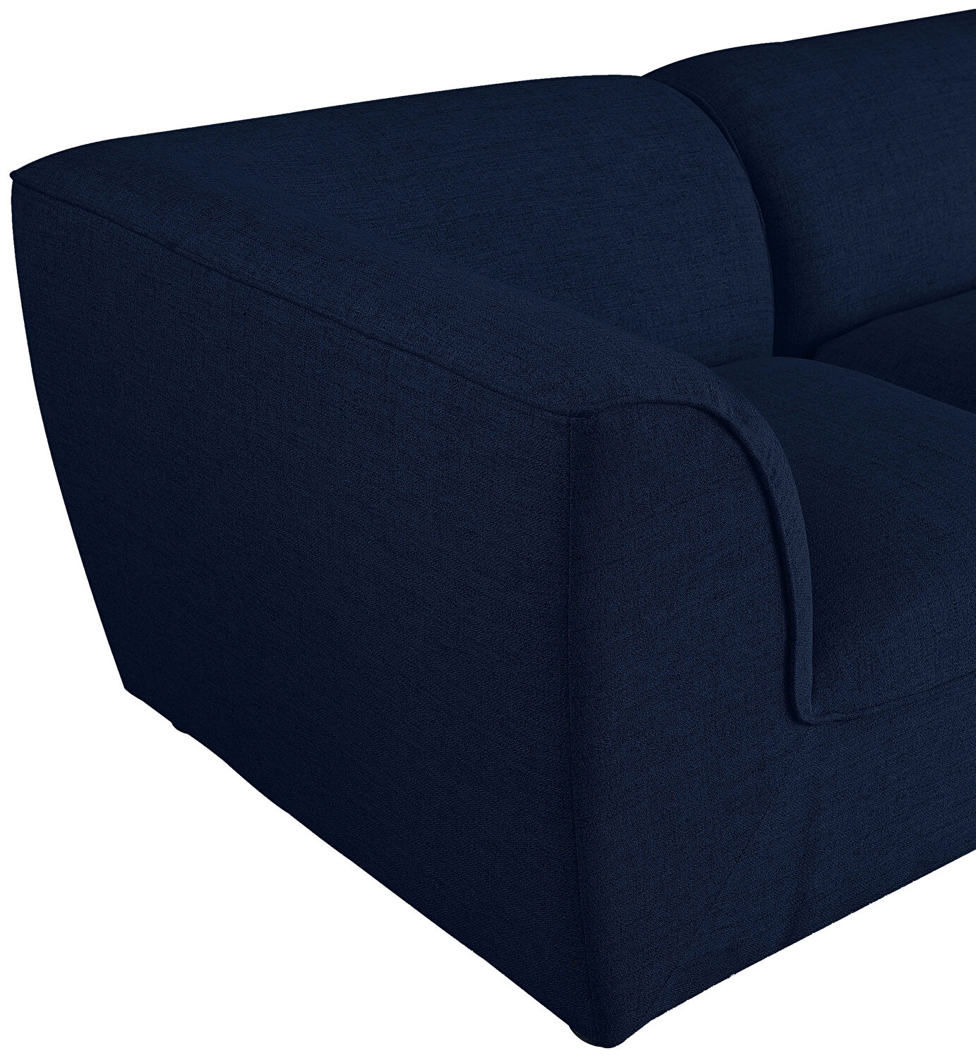 Elevate your living space with the Miramar Modular 5pcs Sectional, a perfect blend of comfort and contemporary style. Designed for versatility and longevity, this sectional boasts a robust frame crafted from top-grade materials, guaranteeing years of reliable use. Draped in a plush, soft navy blue linen-textured upholstery, it invites you to indulge in its luxurious touch, transforming any room into a serene retreat.The beauty of this sectional lies in its modularity; it consists of two corner pieces and three armless chairs, which can be arranged in countless configurations to suit your space and style. The intuitive attachment latches located underneath each piece make it a breeze to mix and match with other items in the Miramar collection, allowing you to create a cohesive and tailored living environment.