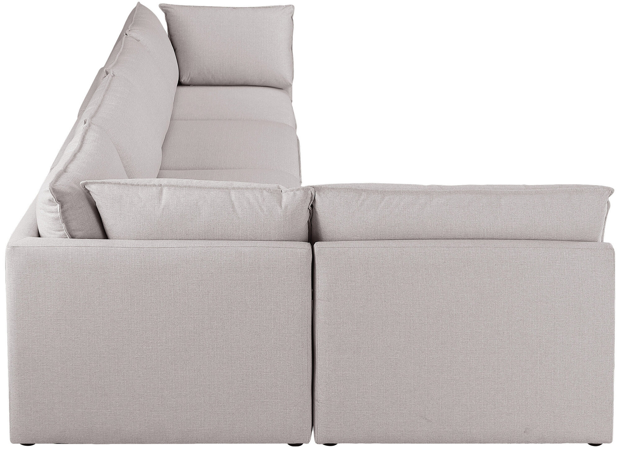 Elevate your living space with the versatile charm of the Mackenzie series, where comfort meets customization. Designed with a contemporary aesthetic in mind, each piece in this exquisite collection invites you to create a unique seating arrangement tailored to your lifestyle and space. From luxurious sectionals to various modular components, this Mackenzie beige 5pcs sectional (3 armless chairs, 2 corners) is engineered to seamlessly integrate into an endless array of configurations.Crafted with meticulous attention to detail, the pieces are enveloped in a plush linen-textured fabric that promises durability and a soft touch. Choose from an array of color options to perfectly complement your home décor. The structural integrity of each piece is fortified with robust engineered wood and cushioned with sumptuous foam for an indulgent seating experience.