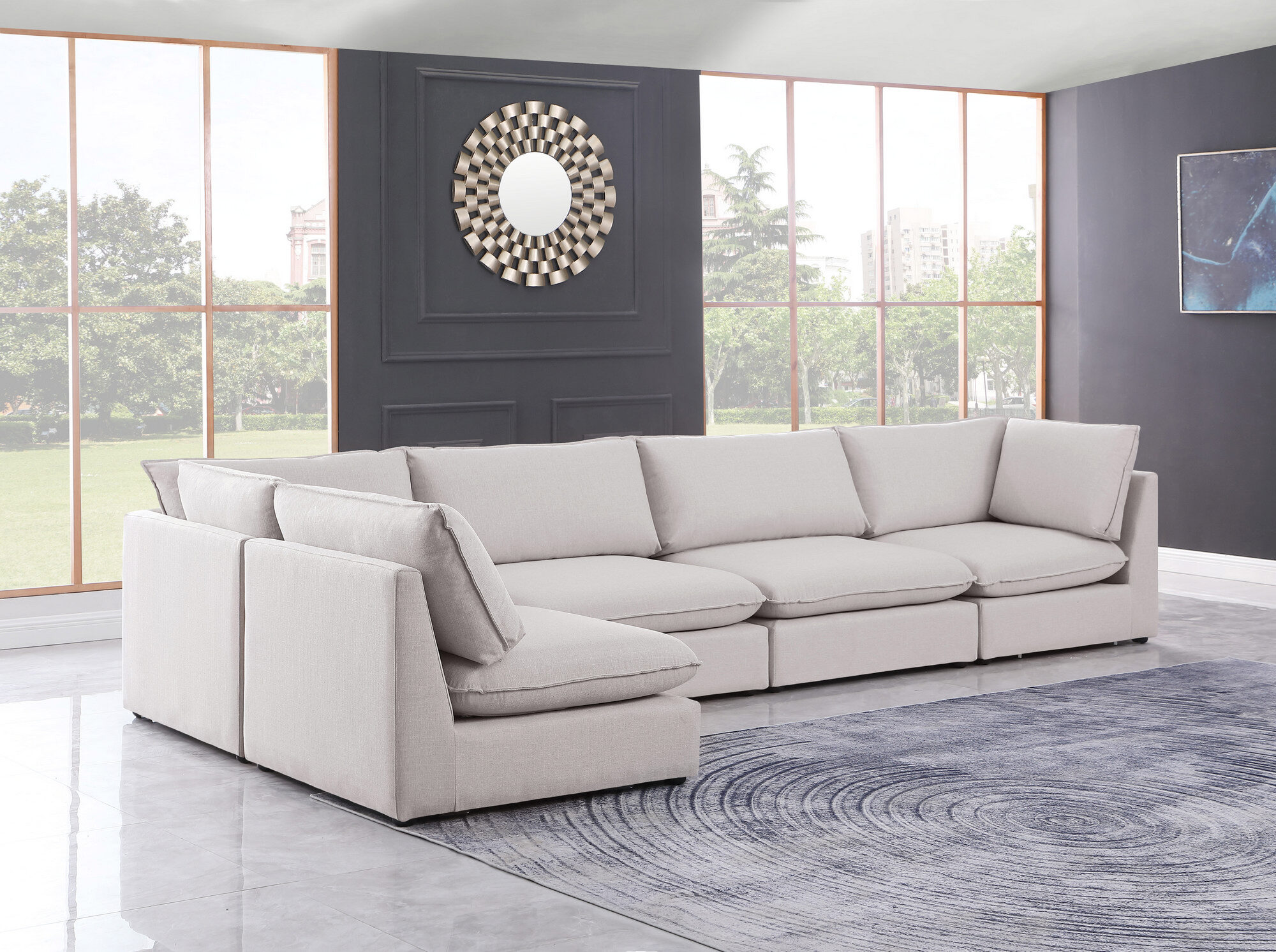 discountMackenzie linen textured comfy 5pcs modular sectional