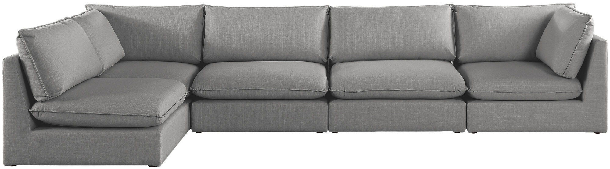 Elevate your living space with the versatile charm of the Mackenzie series, where comfort meets customization. Designed with a contemporary aesthetic in mind, each piece in this exquisite collection invites you to create a unique seating arrangement tailored to your lifestyle and space. From luxurious sectionals to various modular components, this gray Mackenzie 5pcs sectional (3 armless chairs, 2 corners) is engineered to seamlessly integrate into an endless array of configurations.Crafted with meticulous attention to detail, the pieces are enveloped in a plush linen-textured fabric that promises durability and a soft touch. Choose from an array of color options to perfectly complement your home décor. The structural integrity of each piece is fortified with robust engineered wood and cushioned with sumptuous foam for an indulgent seating experience.