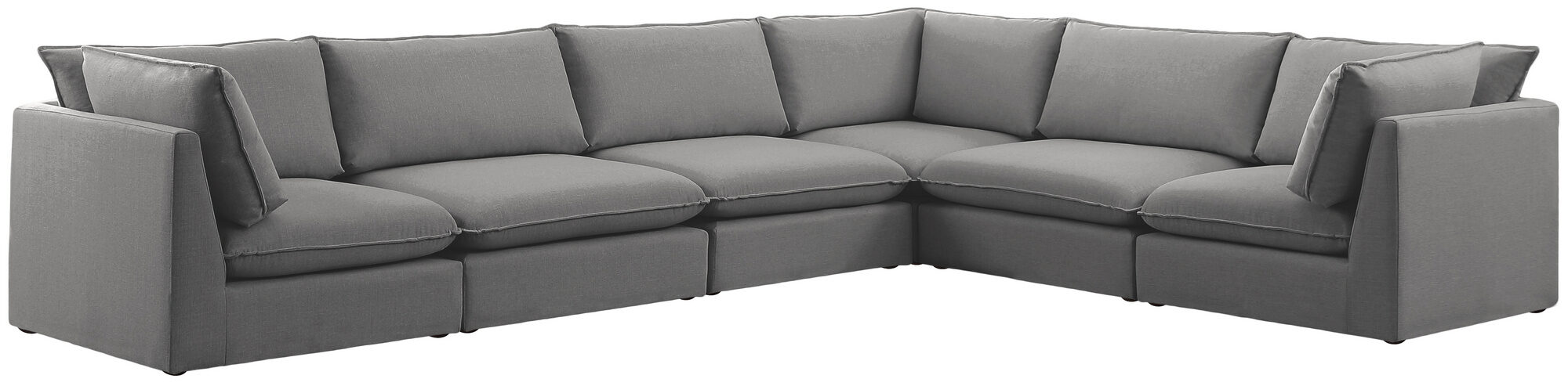 Elevate your living space with the versatile charm of the Mackenzie series, where comfort meets customization. Designed with a contemporary aesthetic in mind, each piece in this exquisite collection invites you to create a unique seating arrangement tailored to your lifestyle and space. From luxurious sectionals to various modular components, this gray Mackenzie 6pcs sectional (3 armless chairs, 3 corners) is engineered to seamlessly integrate into an endless array of configurations.Crafted with meticulous attention to detail, the pieces are enveloped in a plush linen-textured fabric that promises durability and a soft touch. Choose from an array of color options to perfectly complement your home décor. The structural integrity of each piece is fortified with robust engineered wood and cushioned with sumptuous foam for an indulgent seating experience.