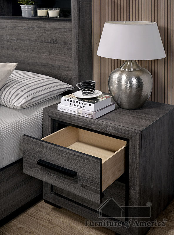 The gray finish is smoky and sophisticated while showcasing a lovely wood grain. The accompanying case goods offer clean modern storage for your items.Features: