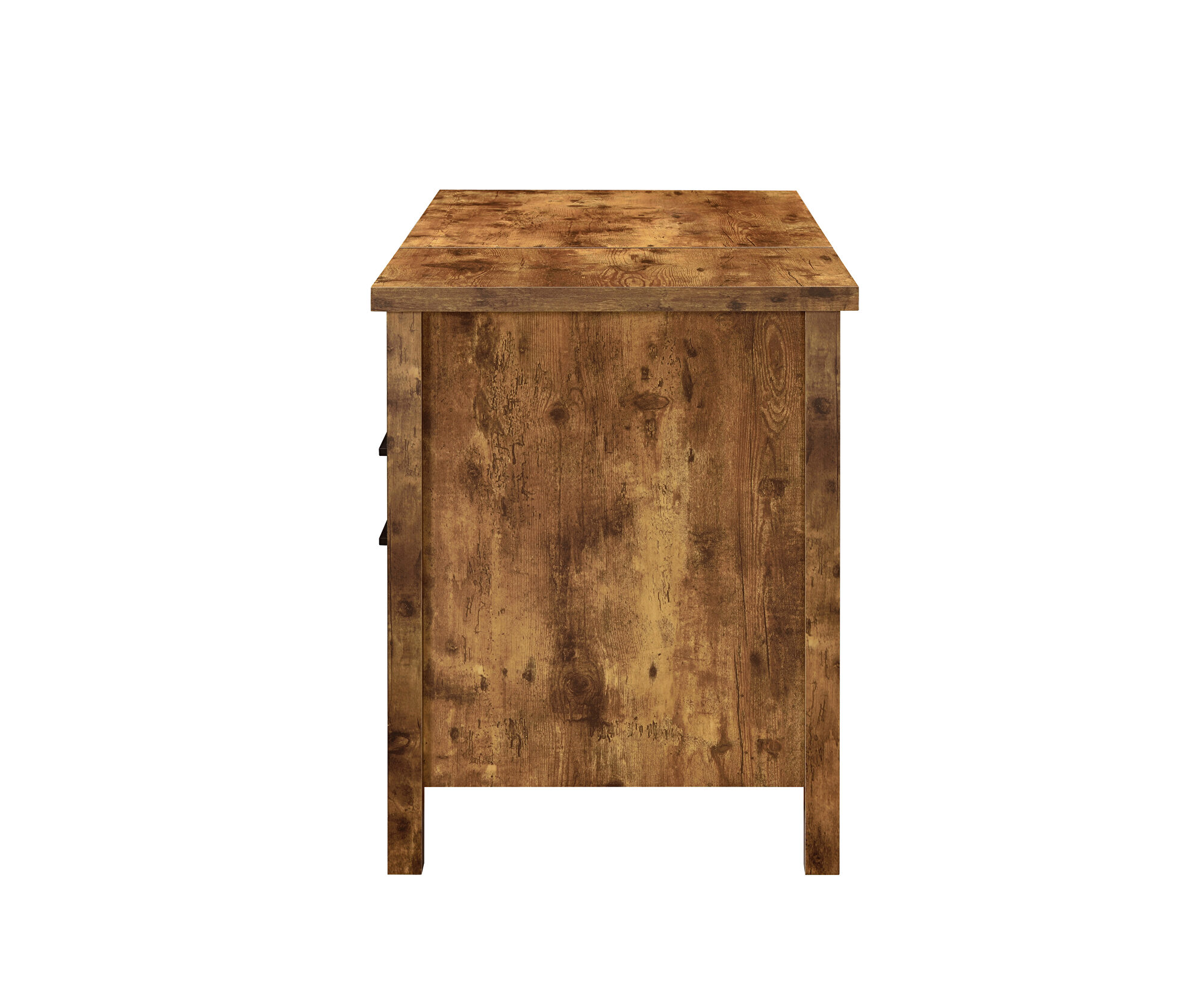 Set up a space for efficacious study with this stylish lift top desk for your home office. Beautiful antique nutmeg finish with contrasting metal pull handles powder coated in black. Lift-top reveals abundant storage space and promotes wellness with proper standing height. Features an open cubby, storage drawer, and file cabinet that accommodates both legal and letter size files.Features: