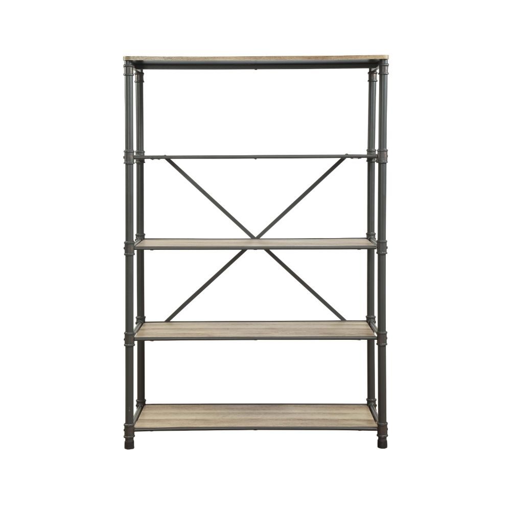Itzel antique oak finish & sandy gray metal bookshelf