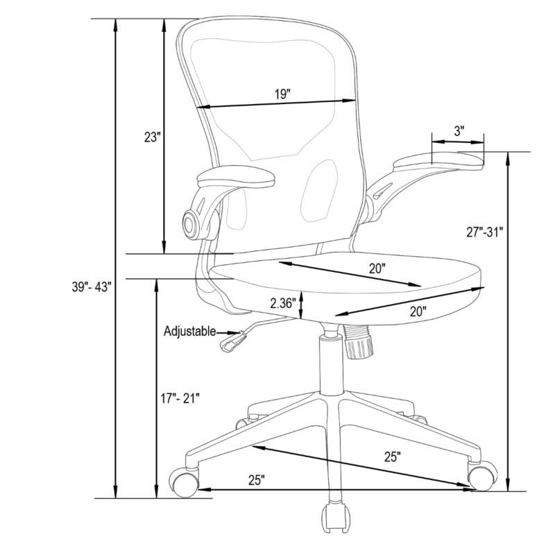 The Newton Mesh Office Chair is perfect for a day's work, The Teal chair with double layers mesh can avoid sweaty feeling from a long time sitting. An adjustable lever underneath the seat can adjust the height and also can control the rock function. Flip-up arms give the option to go armless. Moreover, it can be put under the desk with flip-up arms to save your room, especially is suitable for small space. A desk chair like this is a great option for contemporary style with functional support and mobility. Weight Capacity: 250 lbFeatures: