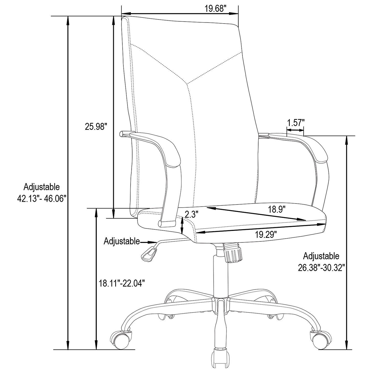 Seat and back with heavy-duty Y-shaped stitching. 360-degree swivel