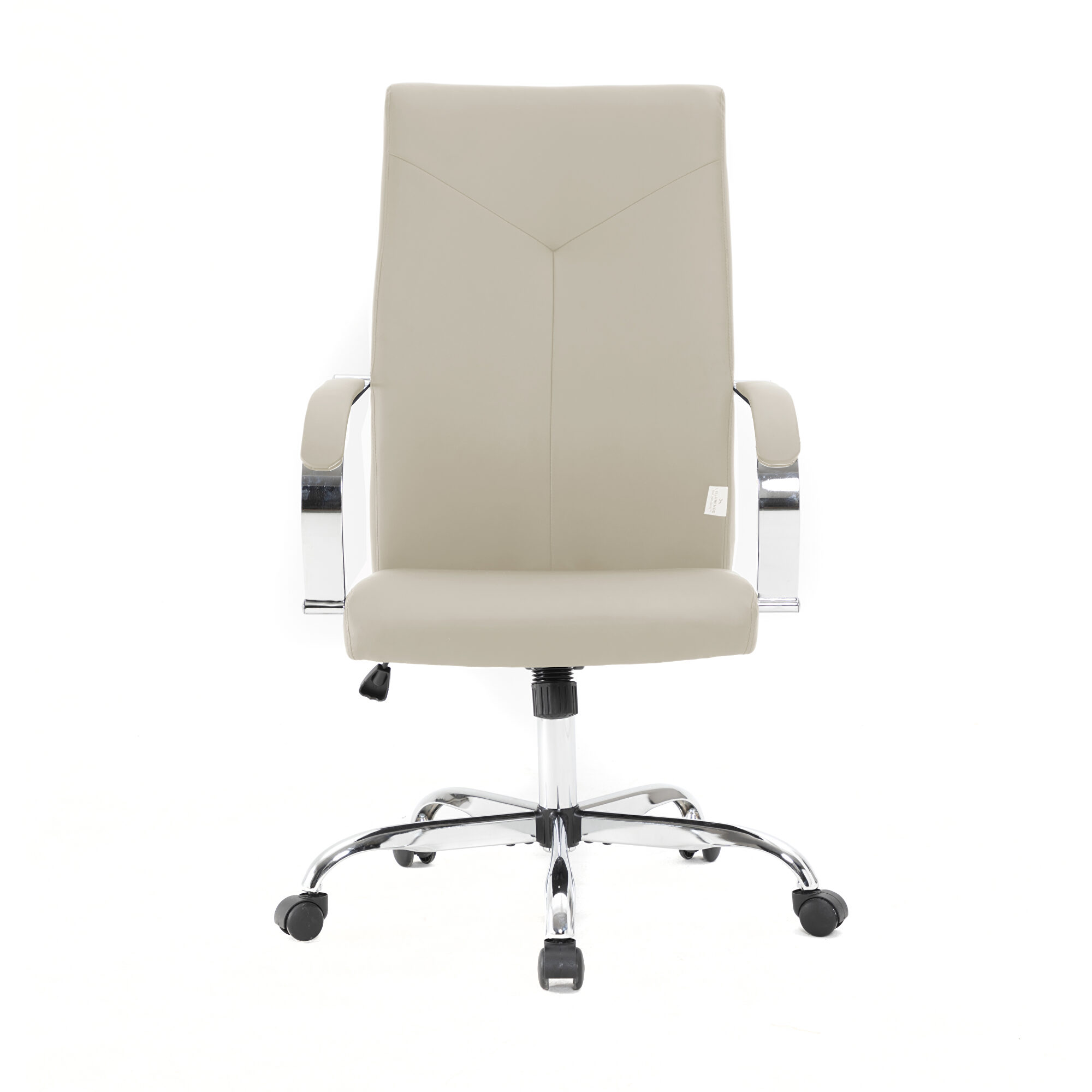 Embrace full luxury with this exceptional Steel Frame Sonora Tan office chair built to provide optimal comfort and a sophisticated aesthetic. The Beautiful Y-shaped stitching will make your chair look good in your contemporary office. The Adjustable Height will help keep your hands aligned with your keyboard for extra productivity. Use the Executive Conference chair's 360-degree swivel wheels to get easily around the office. This chair is the perfect complement to any conference, executive, and management setting. The seat and high back are upholstered with elegant leather and padded with foam for a supported seat. The extra high back will support your back in a comfortable fashion. This chair is perfect for the modern office and is a welcome embodiment of the spirit of progress and determination.Features: