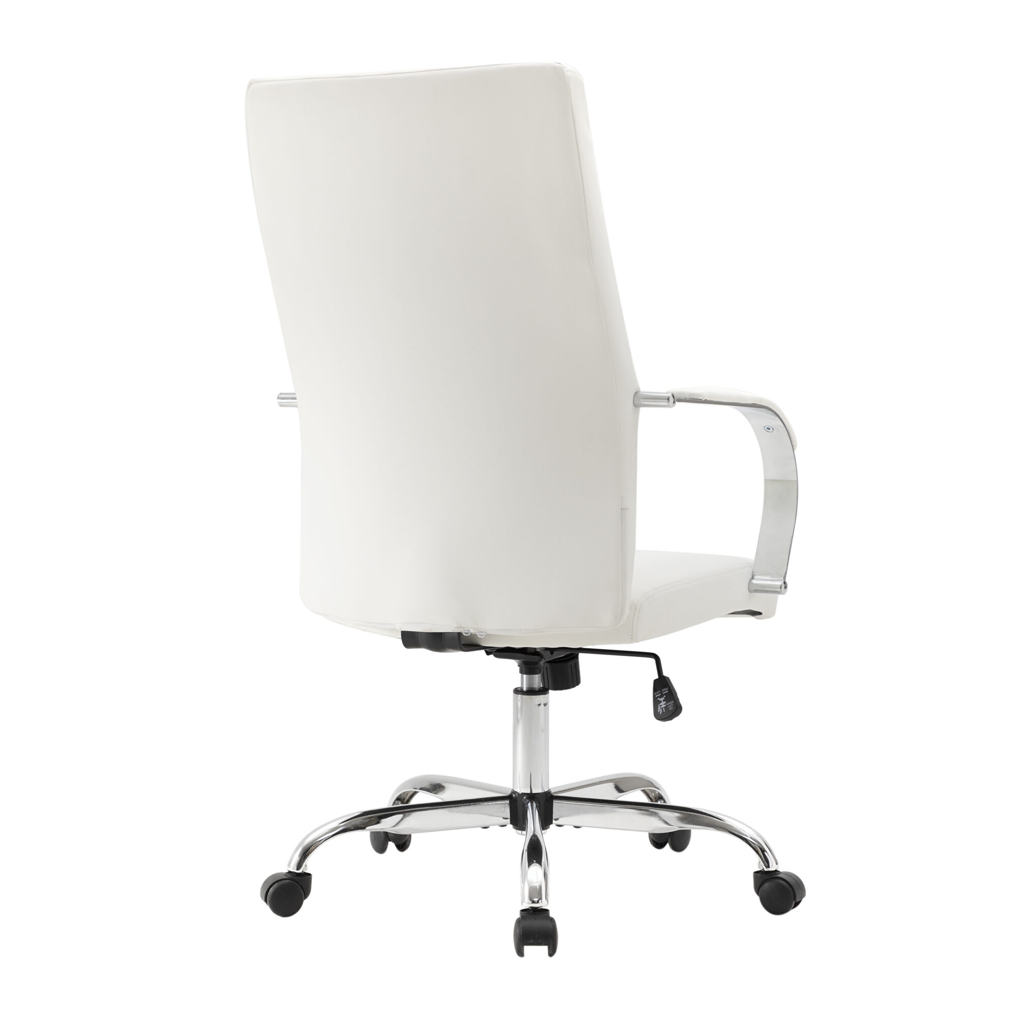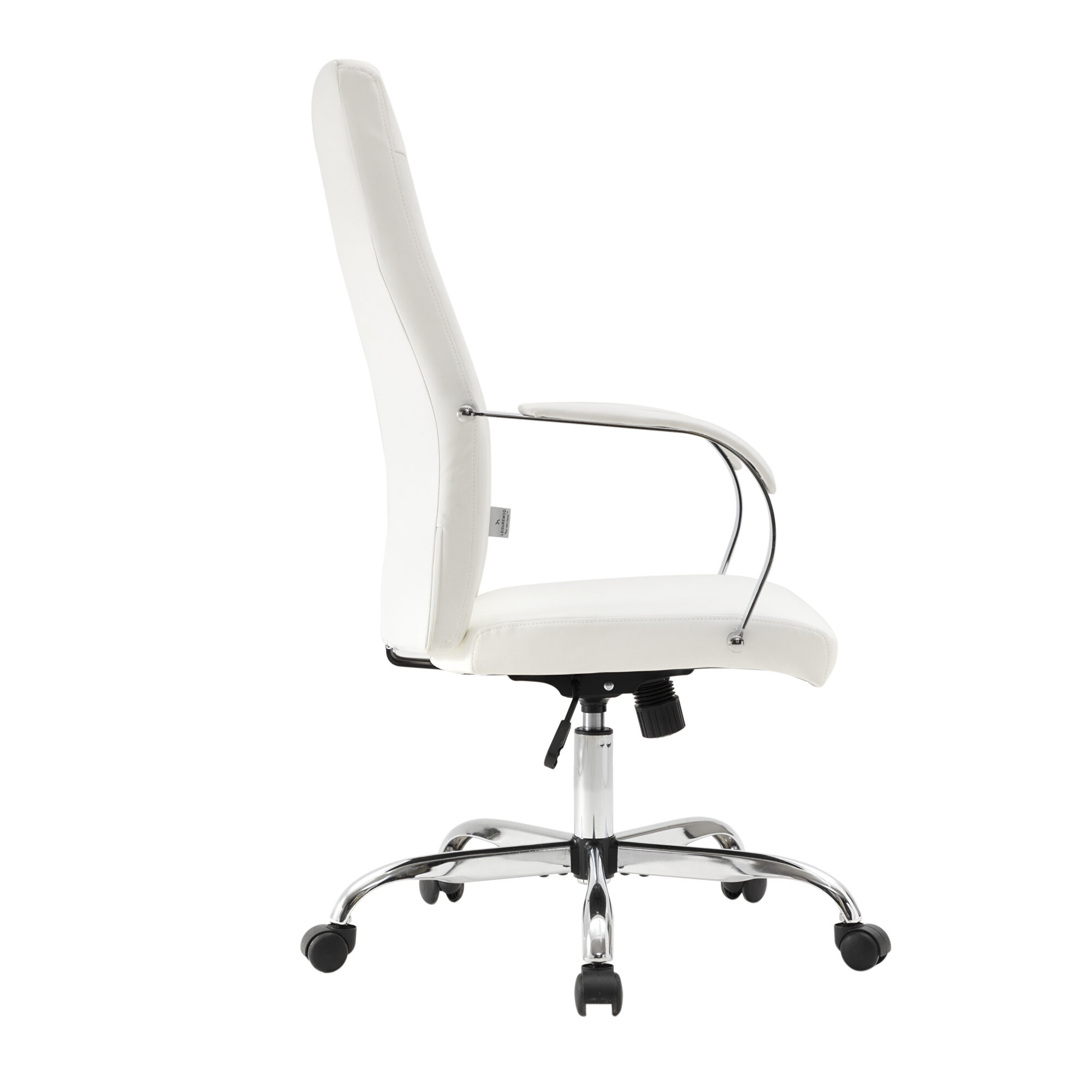 Embrace full luxury with this exceptional Steel Frame Sonora White office chair built to provide optimal comfort and a sophisticated aesthetic. The Beautiful Y-shaped stitching will make your chair look good in your contemporary office. The Adjustable Height will help keep your hands aligned with your keyboard for extra productivity. Use the Executive Conference chair's 360-degree swivel wheels to get easily around the office. This chair is the perfect complement to any conference, executive, and management setting. The seat and high back are upholstered with elegant leather and padded with foam for a supported seat. The extra high back will support your back in a comfortable fashion. This chair is perfect for the modern office and is a welcome embodiment of the spirit of progress and determination.Features: