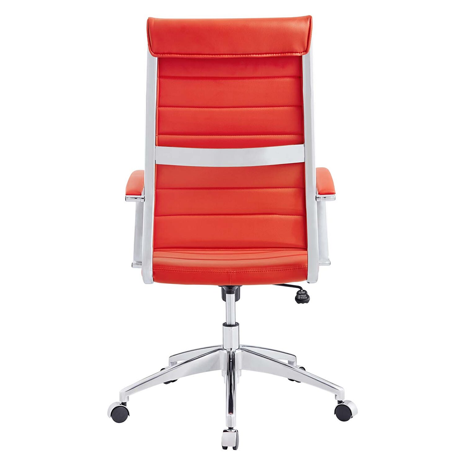 Steer the course and sail to an island called style. Jive is the result of chair makers who decided to design a chair that just works. Functionally, it is a pleasure to sit in as the durable ribbed vinyl back provides natural posture support. The seat cushion and arms are padded, while the form of the armrests was intended to maximize a 90-degree wrist angling for typing. Jive’s chrome-plated aluminum base is fitted with five dual-wheel casters, while a tension knob and tilt lock allow for easy back position adjustments. This is a chair made for the modern office and a welcome embodiment of the spirit of progress and determination.Features: