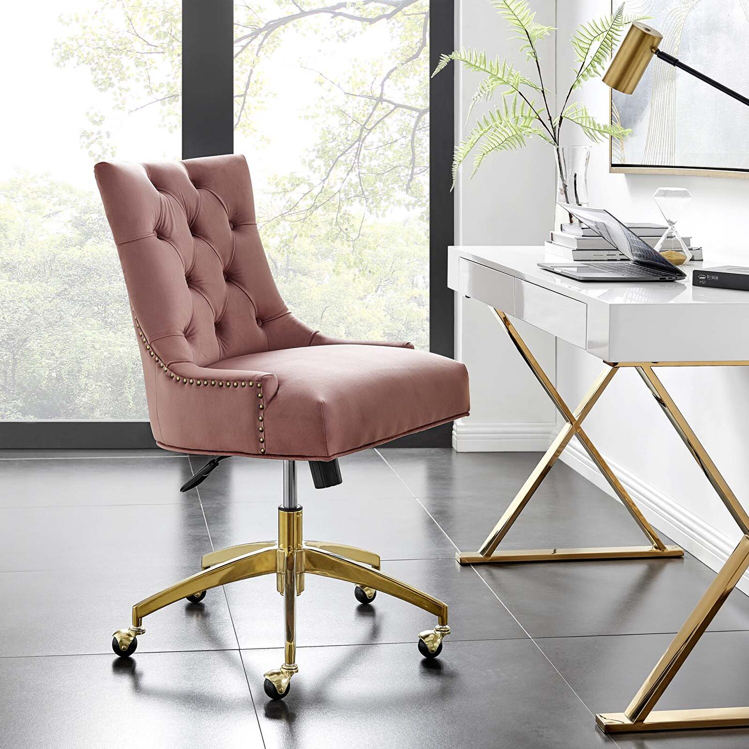 Regent tufted performance velvet office chair in dusty rose