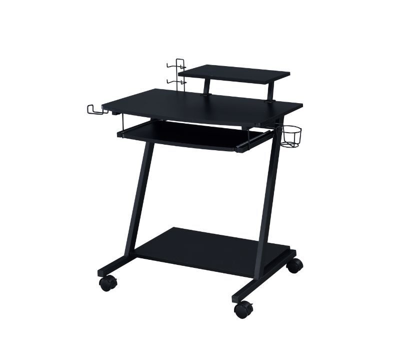 Give you everything you need for work or play. Combining versatile design with a industrial hues, the game table has an edgy metal frame that features cup holder, controller racks and headset rack. Smooth wheels added to the metal frame provide excellent mobility for table. The are also monitor shelf, keyboard and bottom shelf for accommodating and organizing your gaming computer and all of accessories.Features: