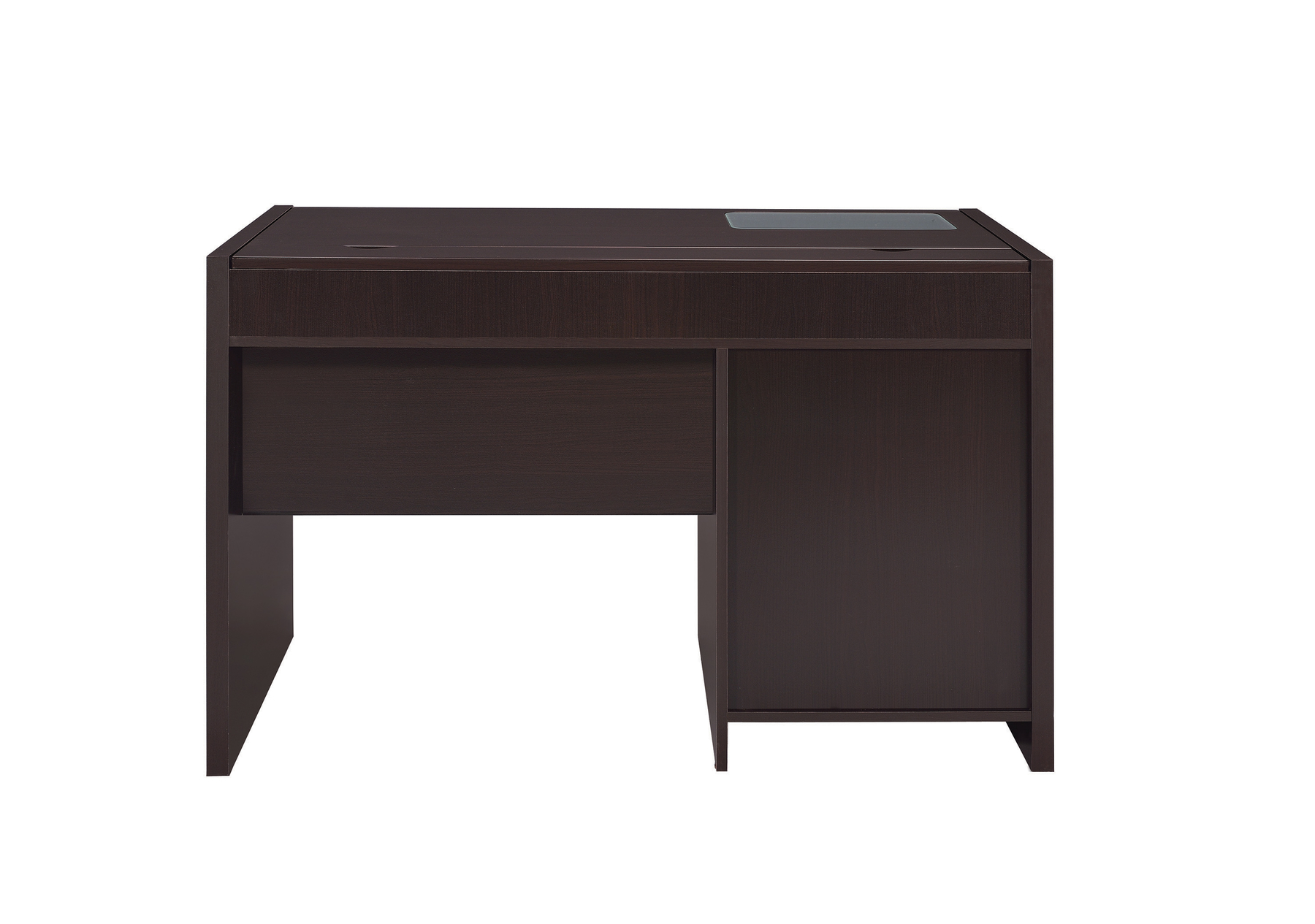 Constructed with mdf, particle board, and engineered veneer, this desk features three drawers including a keyboard drawer with euro glides, and a storage cabinet with an adjustable shelf. View your devices through clear tempered glass insert on desk. A power outlet is located within lift-top storage. This desk is also available in 60" width.Model: Halston II