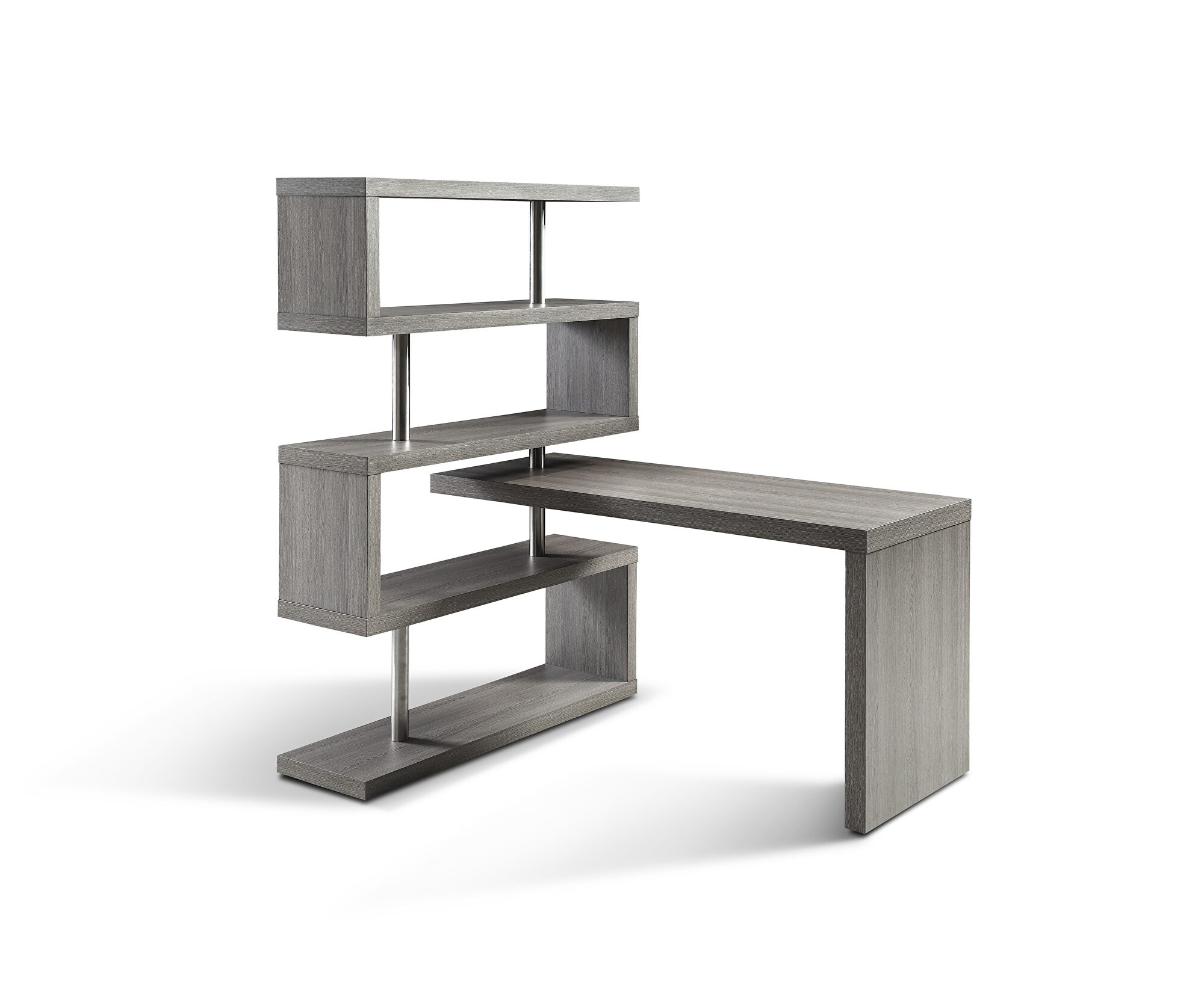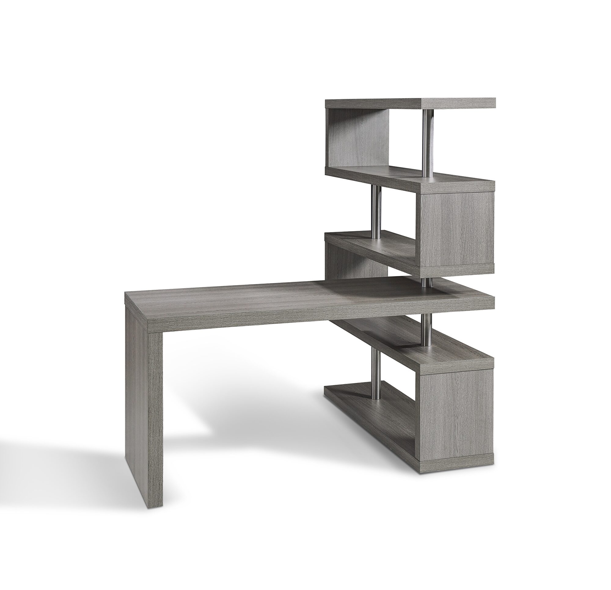 Made with storage in mind. The KD002 is the perfect choice to turn any space into a full functional home office. Plenty of shelf space, without the bulk makes this an excellent option for anybody. Available in a gray matte finish with chrome accents.Model: JM02 Gray