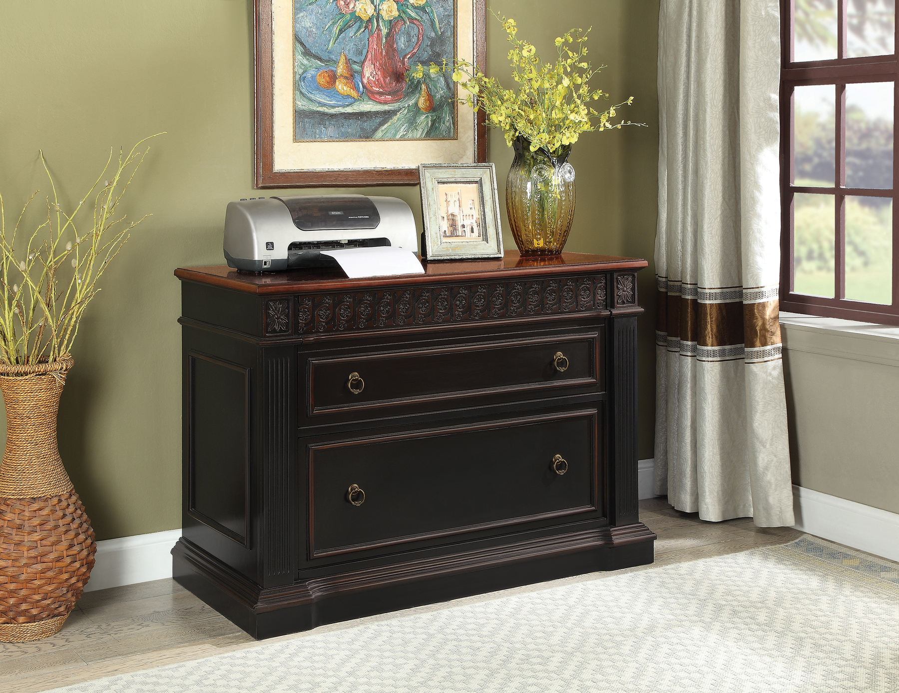 Rowan traditional black and espresso file cabinet