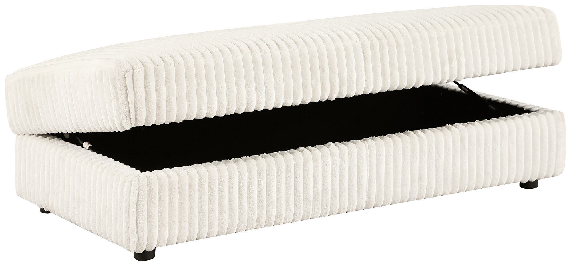 Transform your living space into a sanctuary of sophistication with the Ellington storage ottoman in sumptuous ivory wide corduroy. This expansive ottoman is an embodiment of luxury, designed to cater to the comfort needs of larger families or those who love to entertain.Features: