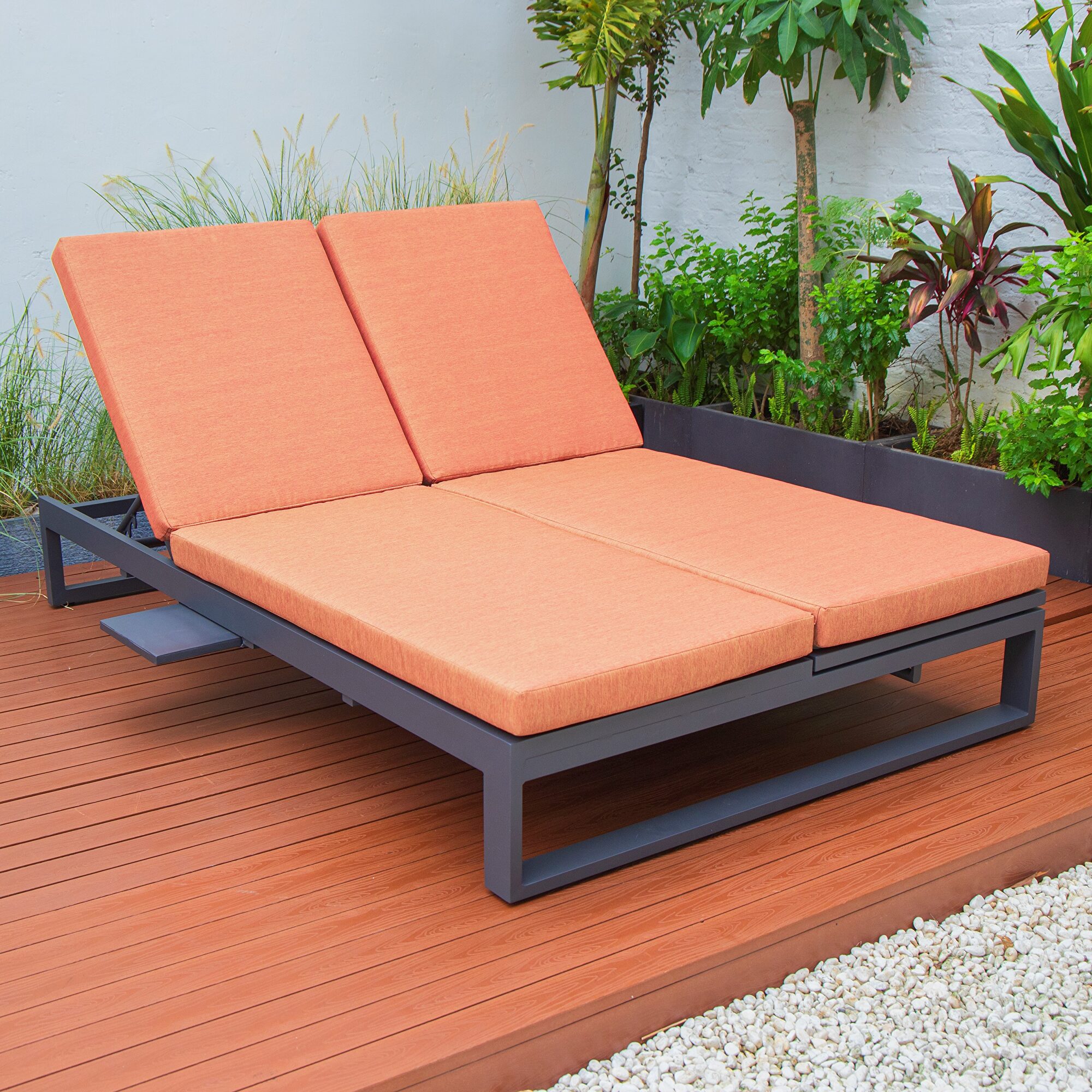 Enjoy your leisure in your own outdoor space with our luxurious 2-in-1 Chelsea Convertible Lounge Reclining Double Chaise Orange Sofa. We have a professional outdoor design team, focusing on the design of high-quality and weather resistance outdoor furniture. This multi-functional Convertible design can be used as a sofa or a lounge chair. The solid structure frame ensures stability, and the cushions comes with ties to lock the lock in place. This is the perfect addition to make the most out of your patio or deck. Weight Capacity: 330 lbFeatures: