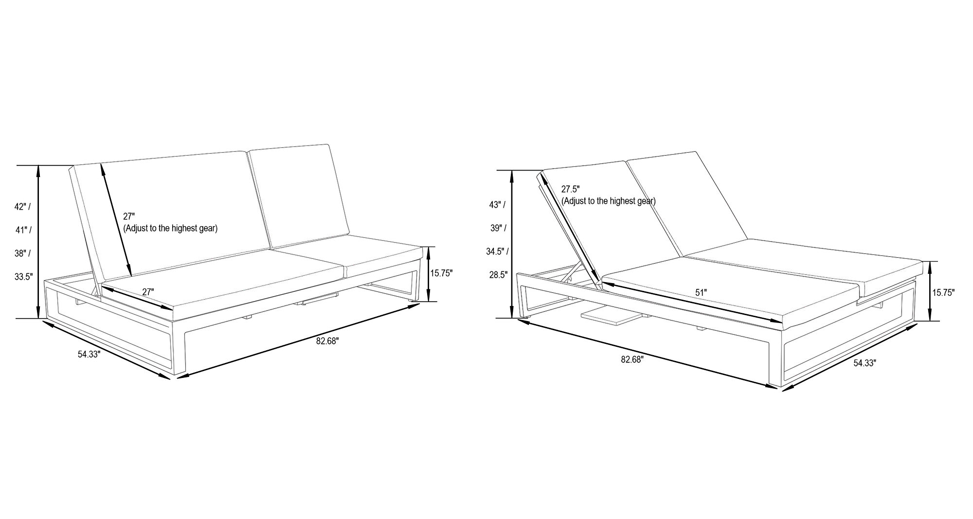 The flexible backrest is fully adjustable at two sides so that you can easily convert it from lying sun bed into a sitting sofa or a double lounge chair