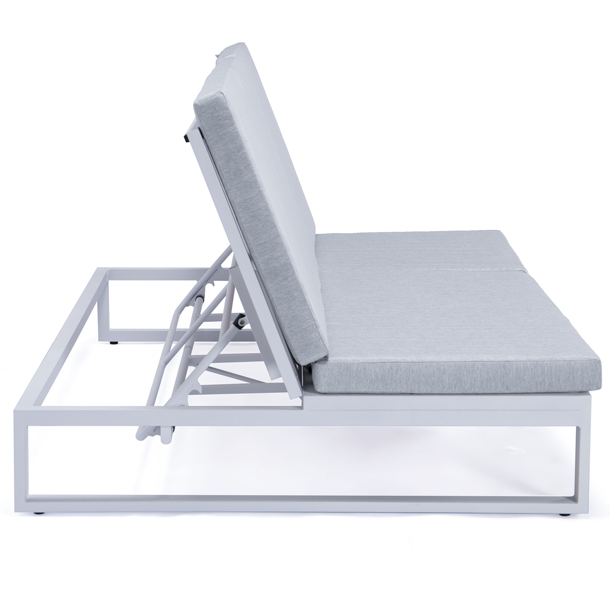 Enjoy your leisure in your own outdoor space with our luxurious 2-in-1 Chelsea Convertible Lounge Reclining Double Chaise Sofa. We have a professional outdoor design team, focusing on the design of high-quality and weather resistance outdoor furniture. This multi-functional Convertible design can be used as a sofa or a lounge chair. The solid structure frame ensures stability, and the Light Gray cushions comes with ties to lock the lock in place. This is the perfect addition to make the most out of your patio or deck. Weight Capacity: 330 lbFeatures: