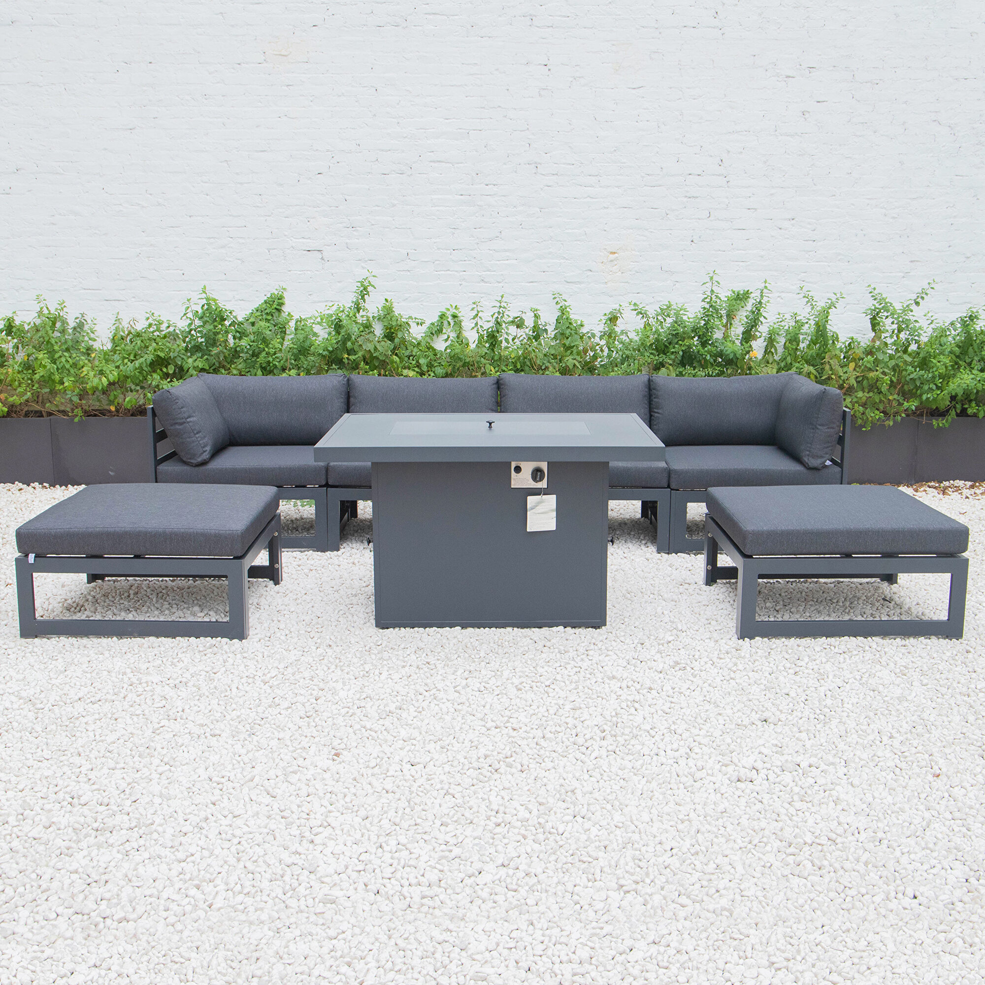 discountChelsea black cushions 7-piece patio ottoman sectional and fire pit table black aluminum