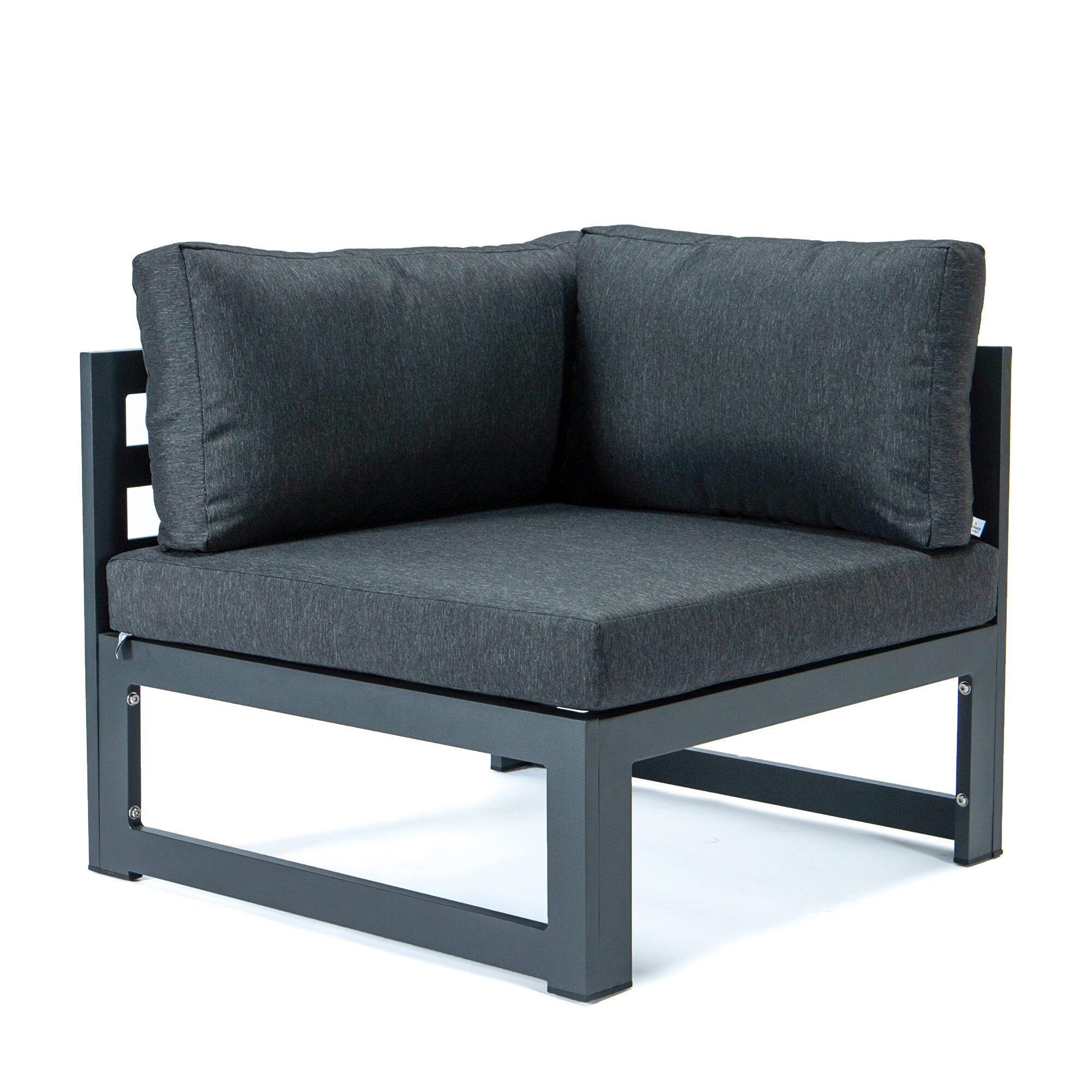 Set up a spot for Fresh air, chilled drinks and warm breezes, whether you're looking to host the neighbors in style or just spread out to enjoy warmer weather there's no better way to extend your living space than with our Chelsea modern outdoor sectional set. We have a professional outdoor design team, focusing on the design of high-quality and weather resistance outdoor sectional sets. The solid structure frame ensures stability and the cushions come with ties lock the cushions for placement where you want them. Black Sitting enough for six people Shape the sectional in the traditional U-Shape or you can shape it however you like to help you make the most out of your patio or deck. Weight Capacity: 440 lbsFeatures: