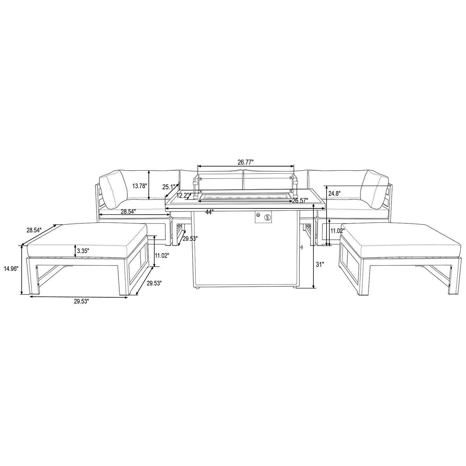 Includes 2 Ottomans, 2 Corner Chairs, 2 Armless Chairs & 1 Fire Pit Table