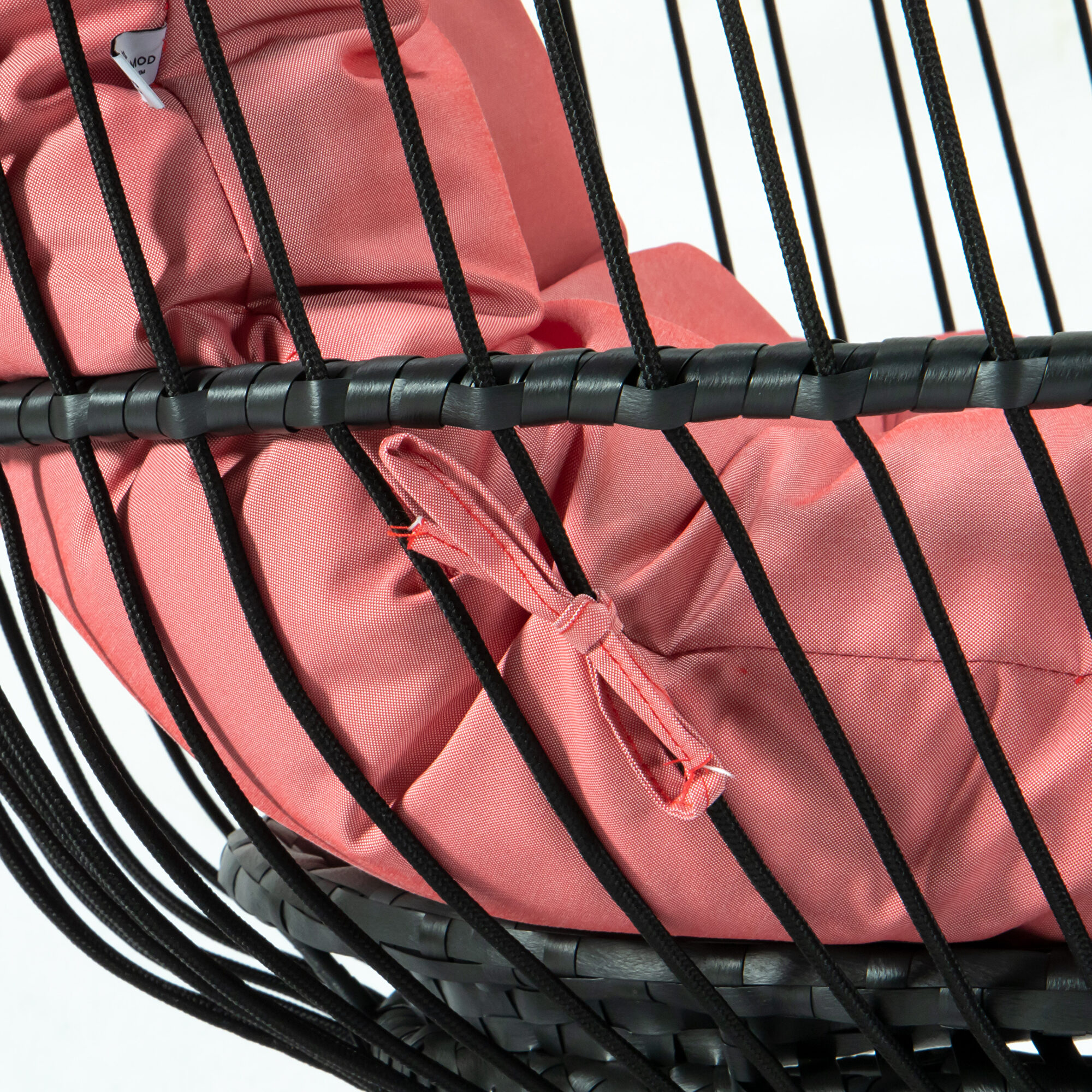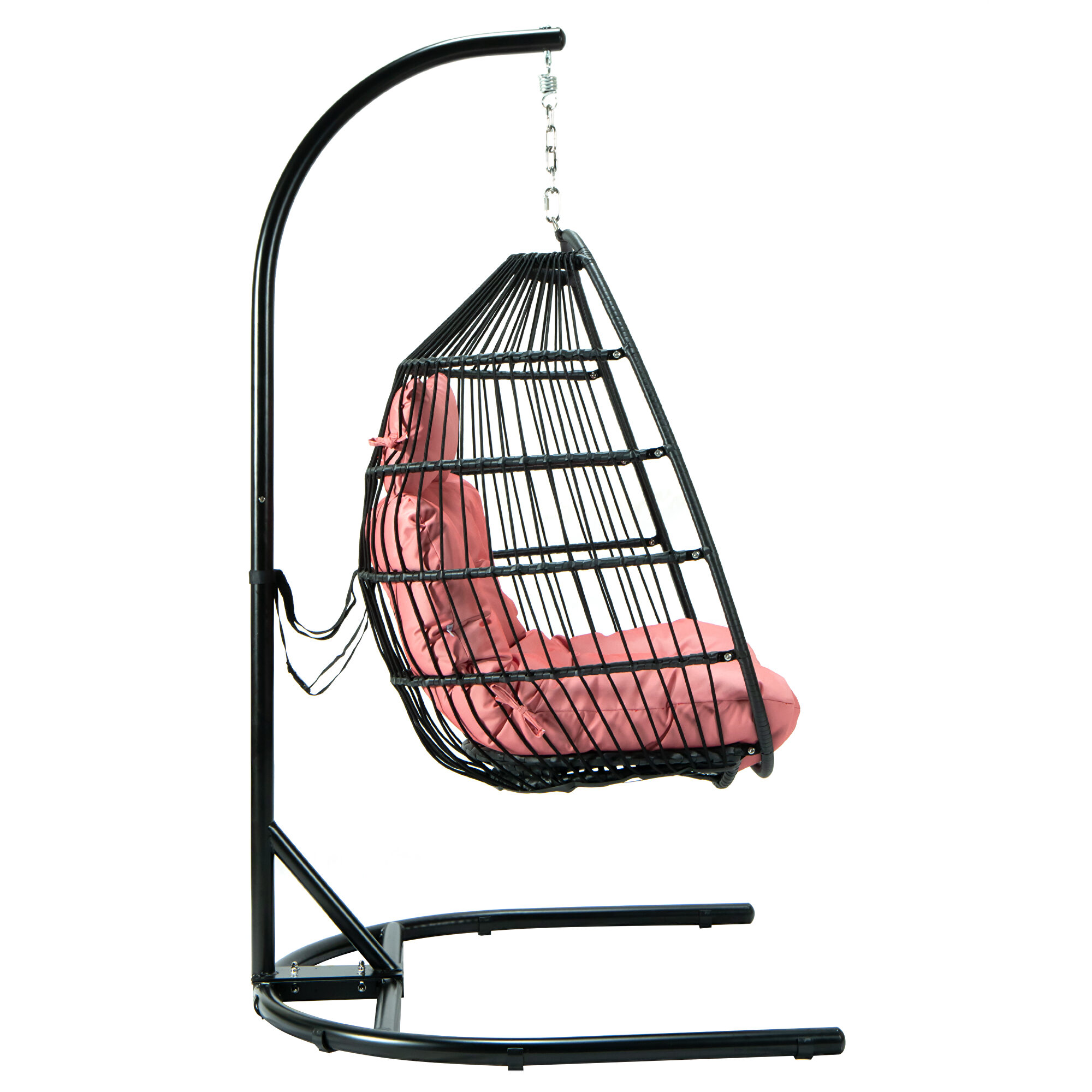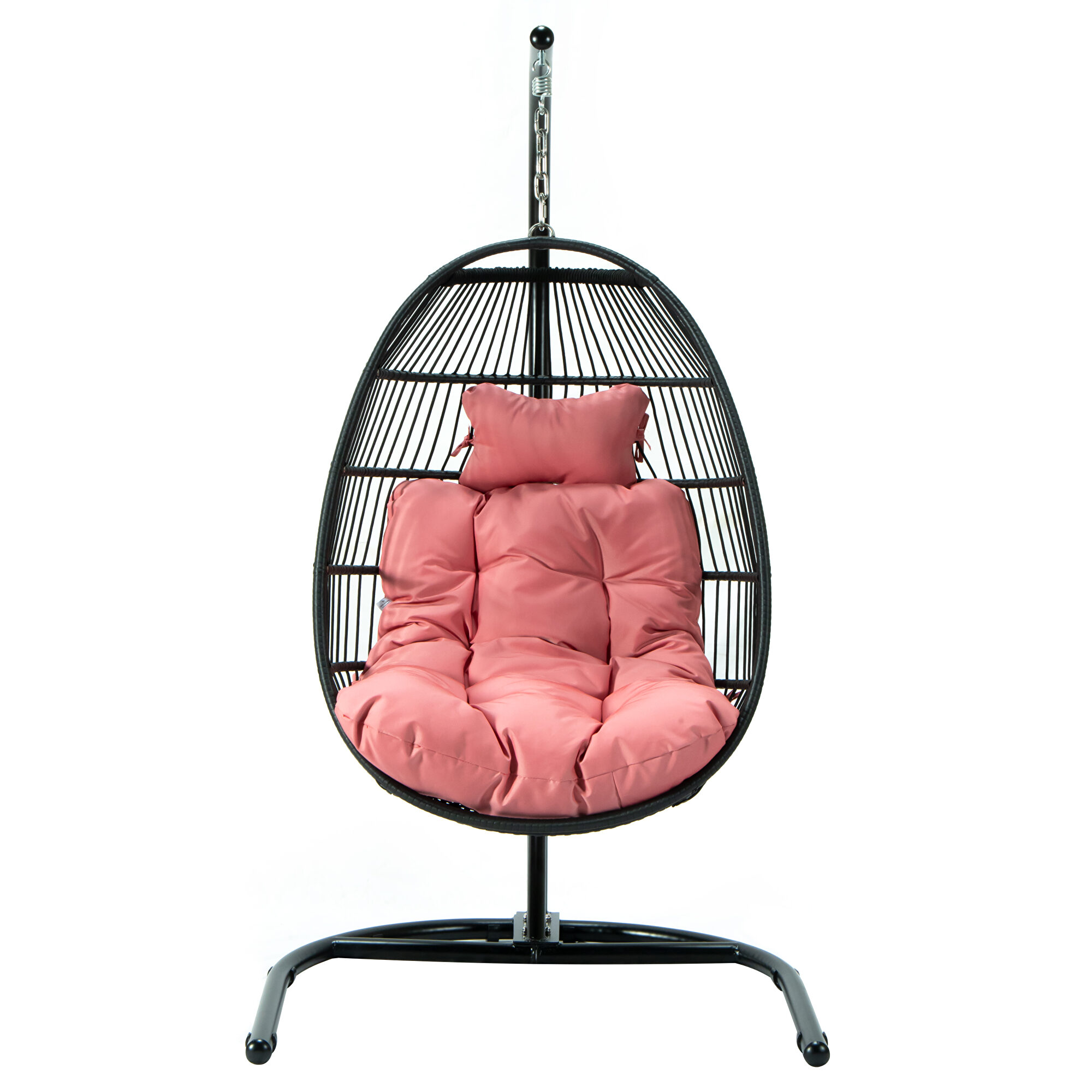 This fun egg-shaped porch swing Pink chair has a folding feature for easy storage. The Egg chair was built to last in the outdoors with its strong durable iron frame it will be perfect for all weathers. This unique swinging Chair is the perfect addition to any space outside, a backyard patio, deck, in a sun-room or garden, or near a pool, or outdoor Bar. Weight Capacity: 264 LBsFeatures: