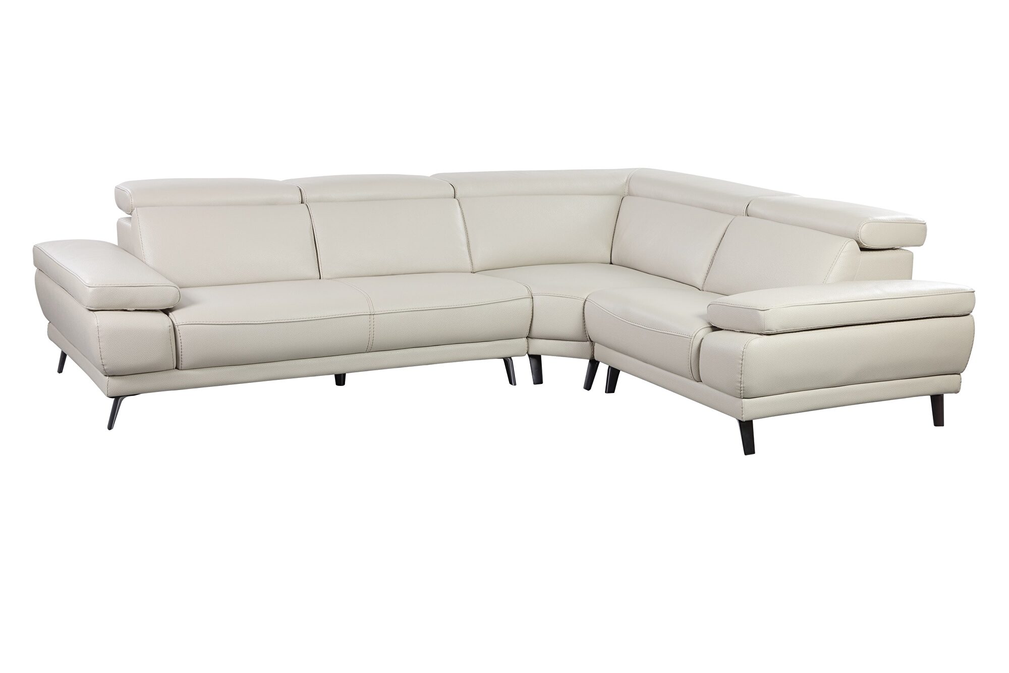 Experience the epitome of modern comfort with the Mercer Right-Facing Sectional, elegantly upholstered in luxurious full taupe leather. This chic and stylish piece brings a touch of sophistication to any living space with its sleek contemporary design and innovative motion headrests, ensuring personalized comfort. Select from an array of color options to perfectly match your decor. This particular model boasts generously sized full armrests on both ends, providing ample support and a harmonious aesthetic. Elevate your home with this versatile and inviting sectional, designed for those who appreciate the finer details and a commitment to quality.Features: