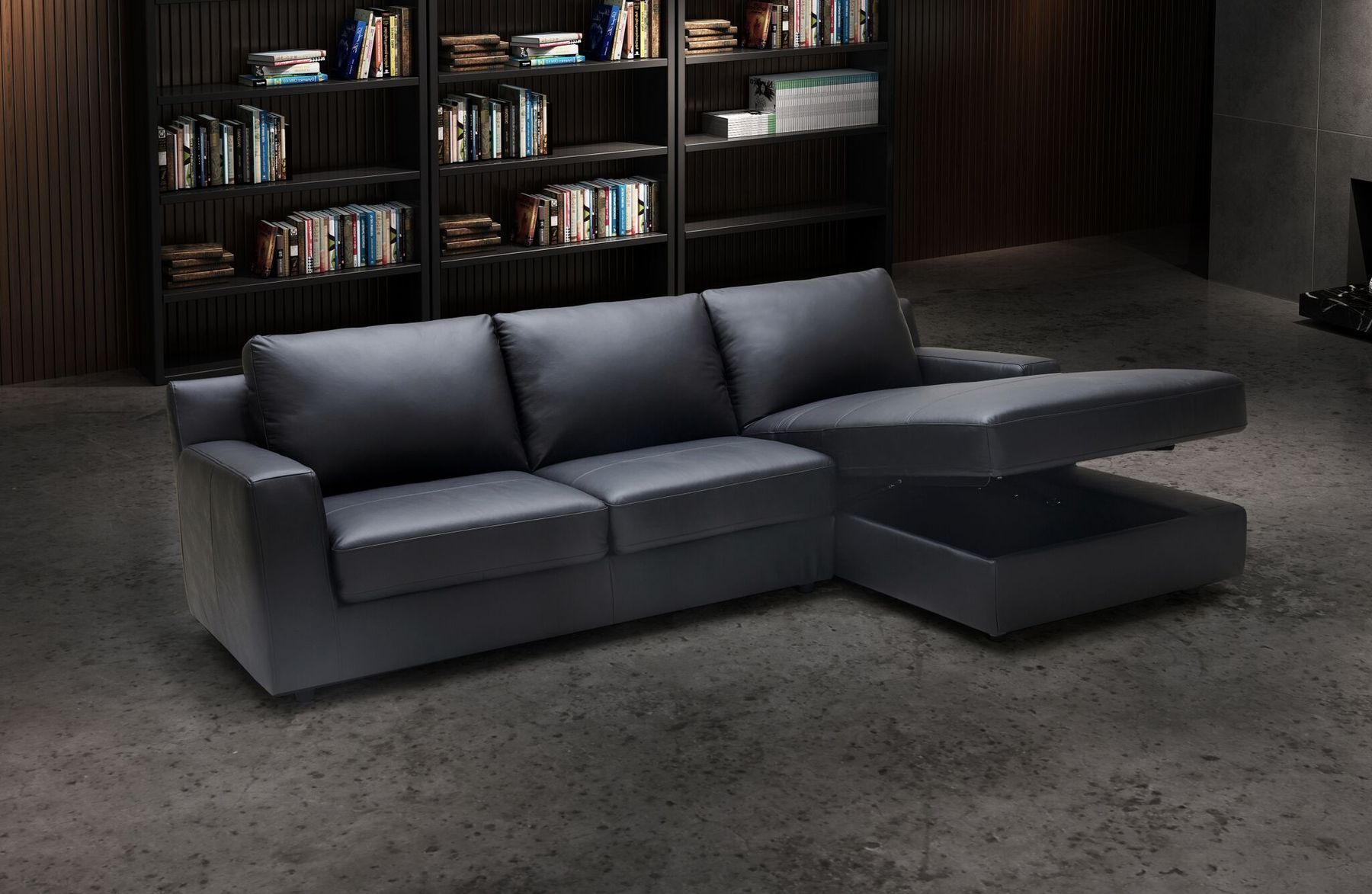 But that's not all the chaise component of this sectional has a surprise in store. It opens up to reveal ample storage space, allowing you to keep your living area clutter-free by conveniently stowing away blankets, pillows, or other living room essentials.