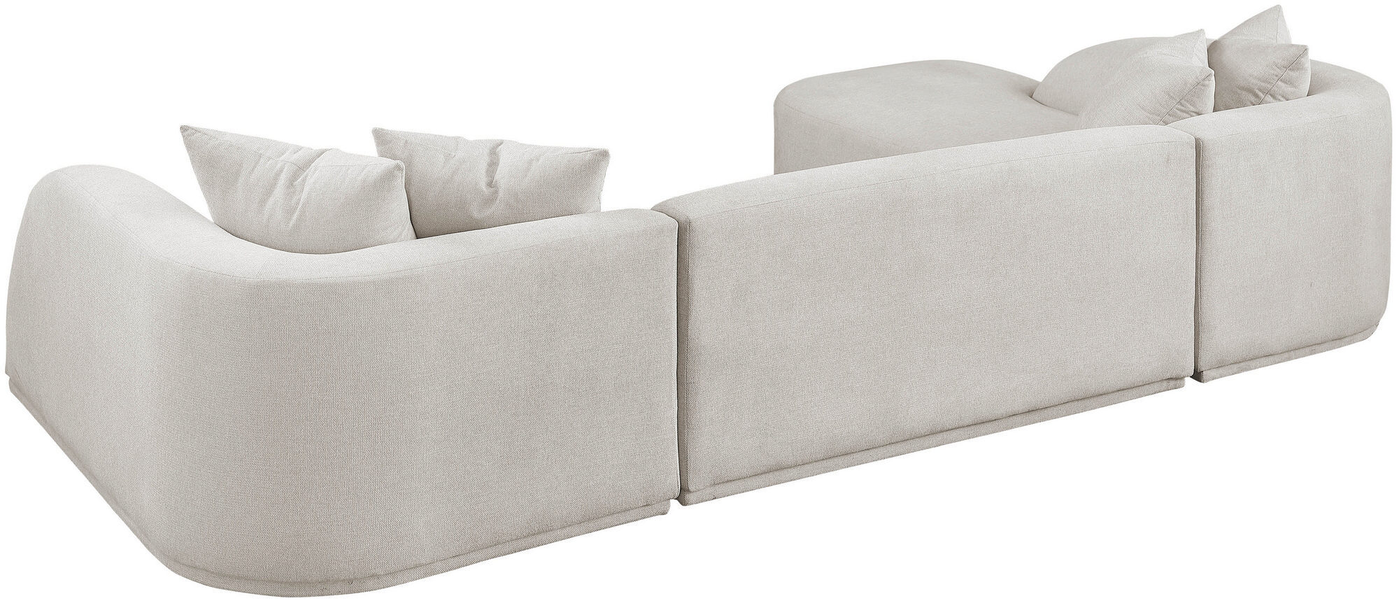 Transform your home entertainment experience with the Rita Fabric Sectional, the ultimate addition to your living room, den, or game room. Designed to elevate your movie nights to new heights of comfort, the Rita Sectional is the perfect spot for gathering your friends and family for an evening of relaxation and fun. With its expansive seating area, everyone can find their favorite spot to sprawl out and indulge in the latest binge-worthy series or catch a nap.Crafted with meticulous attention to detail, this sectional is completely wrapped in a plush, soft beige polyester fabric that feels like a gentle embrace against your skin. The contemporary design of the Rita Sectional, featuring elegantly curved back and arms, adds a touch of modern sophistication to your space, while the included coordinating pillows provide an extra layer of comfort and enhance the overall cozy ambiance.