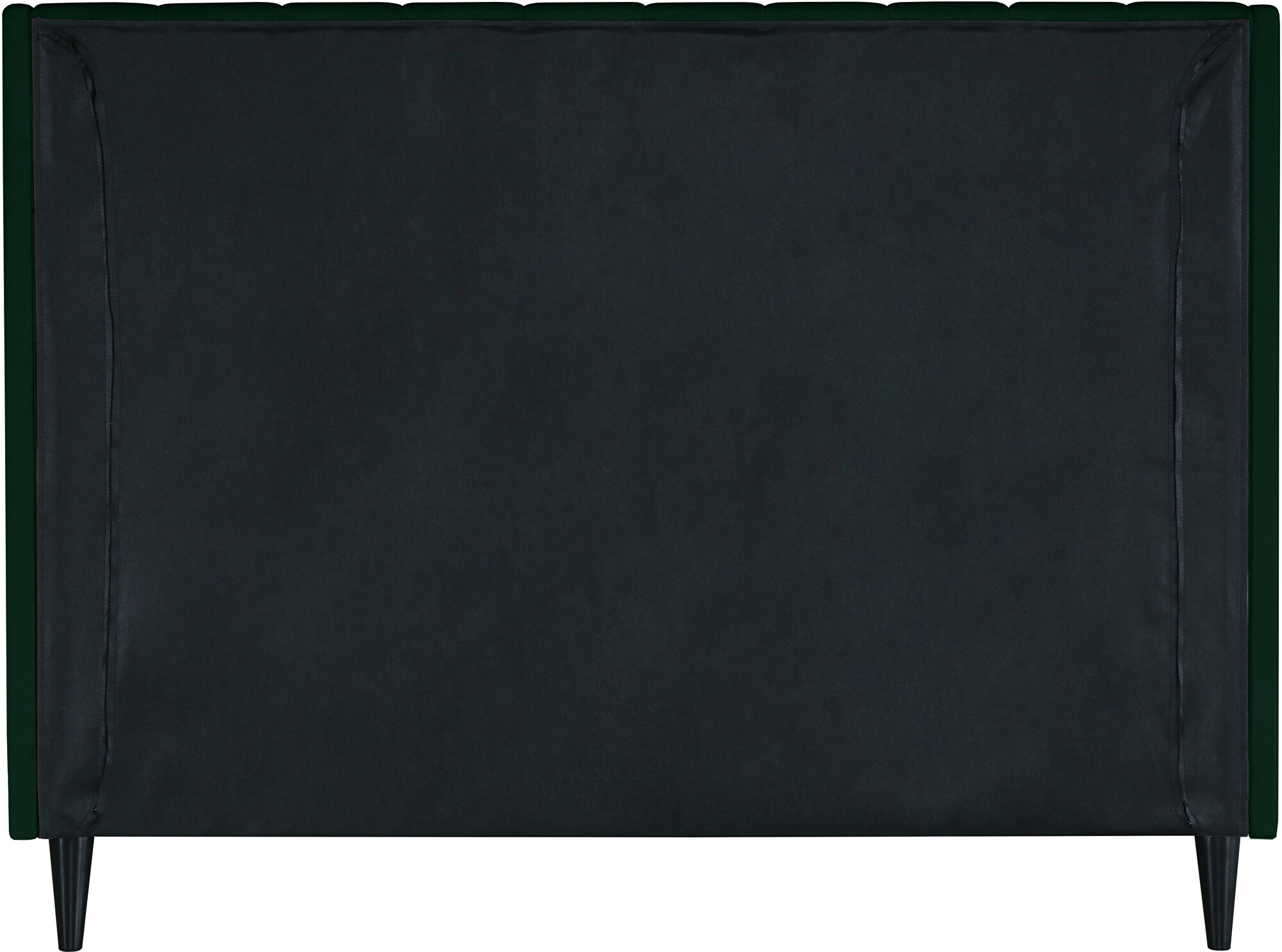 Elevate your bedroom's aesthetic with the Eva Bed, a statement piece that combines functionality with high-end design. Available in a queen size and upholstered in sumptuous green velvet, this bed offers a full platform base, allowing you to forgo the need for a box spring. The distinctive wing-style headboard, adorned with deep channel tufting, creates a focal point that exudes contemporary elegance. Anchored by sleek black legs, this bed is not only a stylish centerpiece but also an affordable luxury. Choose from an array of colors to perfectly match your decor and enjoy the versatility of various sizes to fit any space. The Eva Bed is the epitome of modern comfort, designed to infuse your bedroom with chic sophistication while providing unparalleled support for a restful night's sleep.Features: