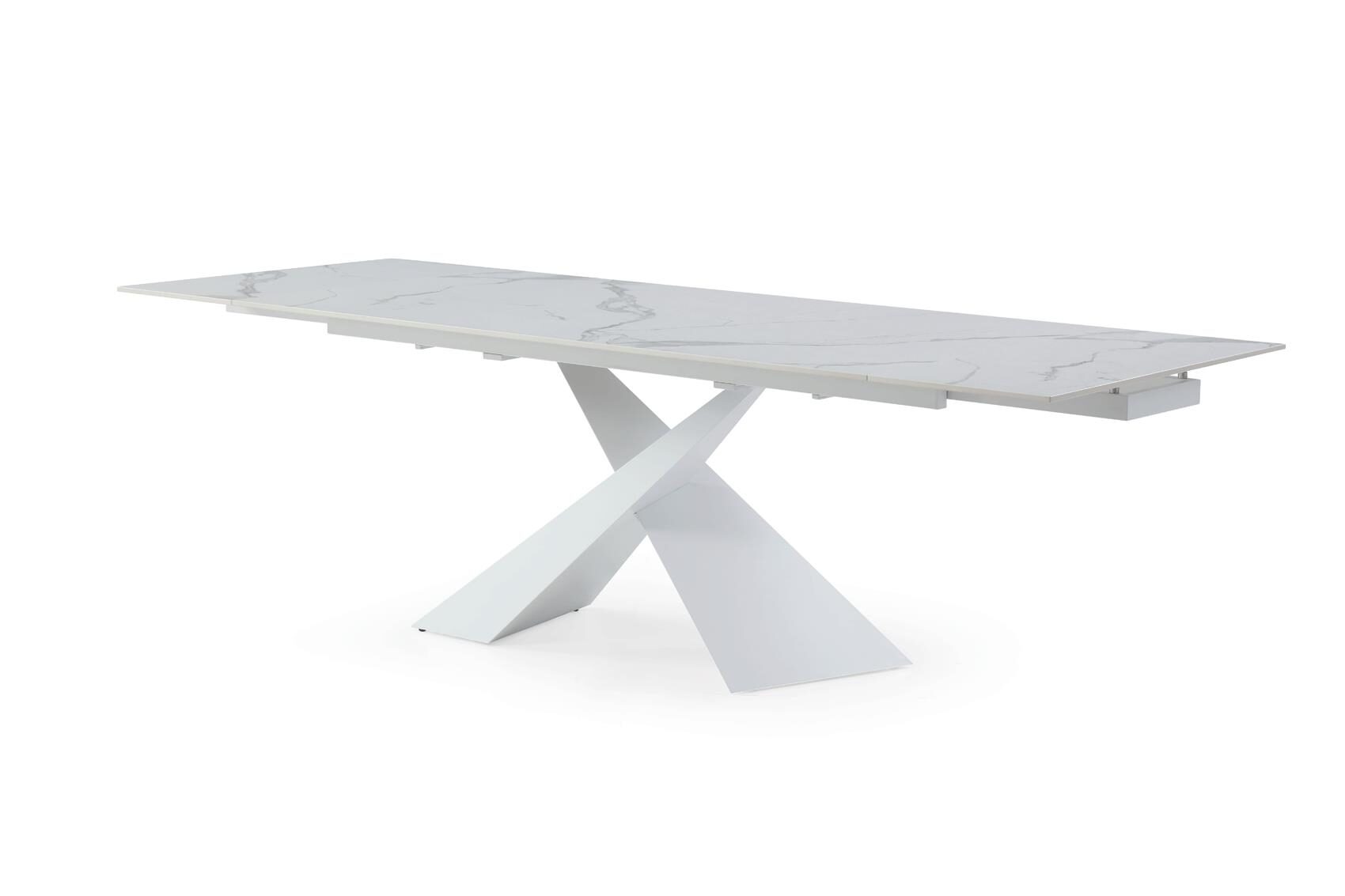 Extendable white dining table perfect for everyday and entertaining use. Can be used with any contemporary chairs. Marble-like top.Features: