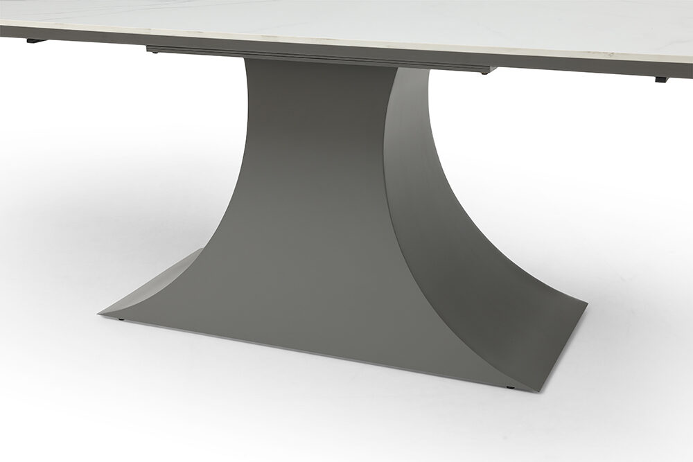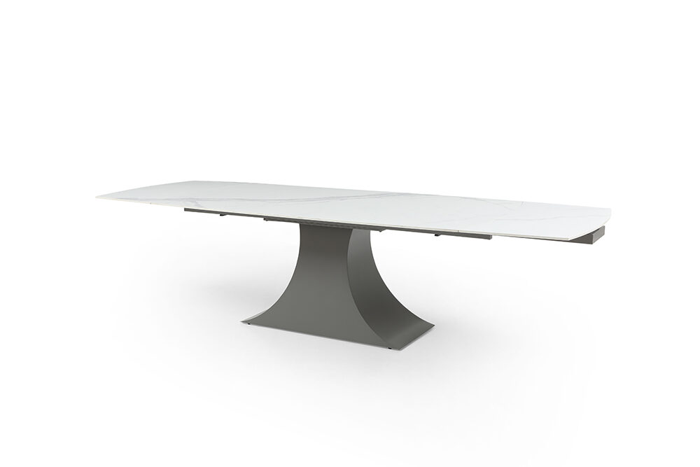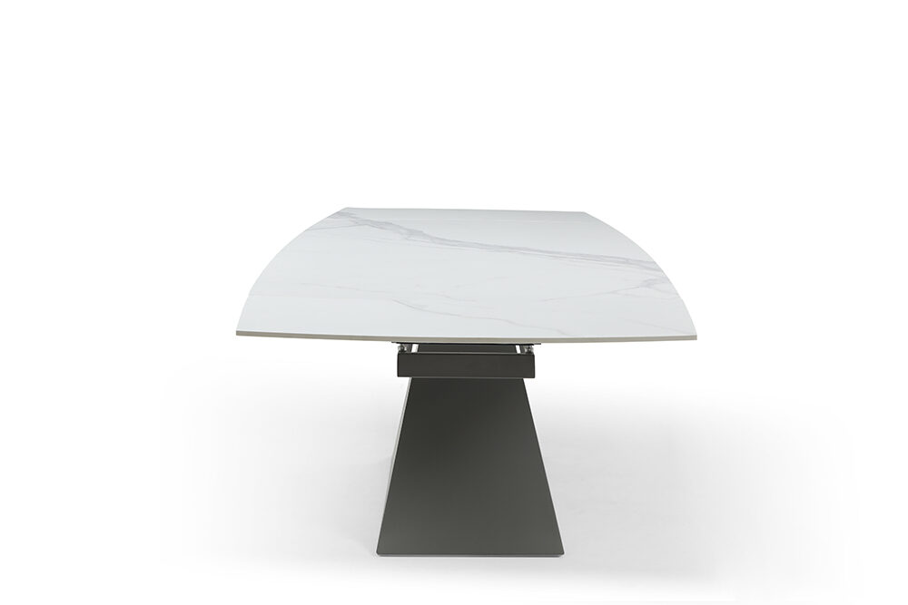 The 9437 Extendable Dining Table with a solid Chinese ceramic matte white marble pattern is a stunning and versatile piece of furniture designed to elevate your dining space. Crafted with precision and attention to detail, this dining table exudes sophistication and modern elegance.Features: