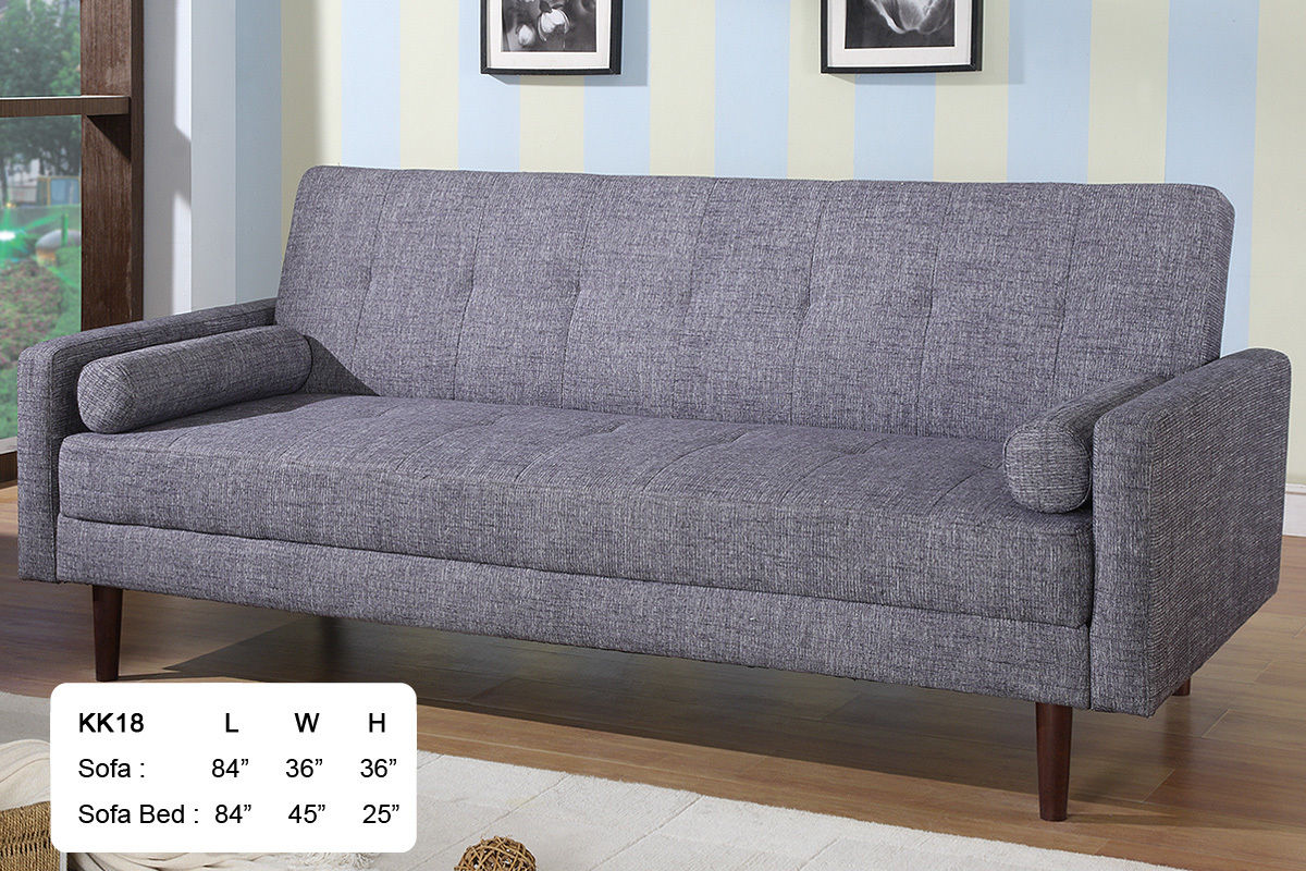 AH18 gray fabric retro-style sofa bed w/ wooden legs