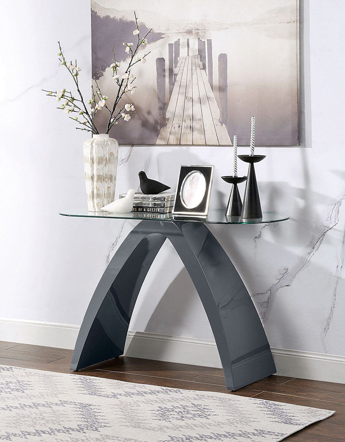 It's a design that appeals to the imagination, an ambitious departure from typical table styles that haven't advanced enough over the years to keep up with evolving tastes. Each has a high-gloss wood base and elliptical tempered glass top. Individually or as a set they establish a mind-bending look worthy of the daring eye.Features: