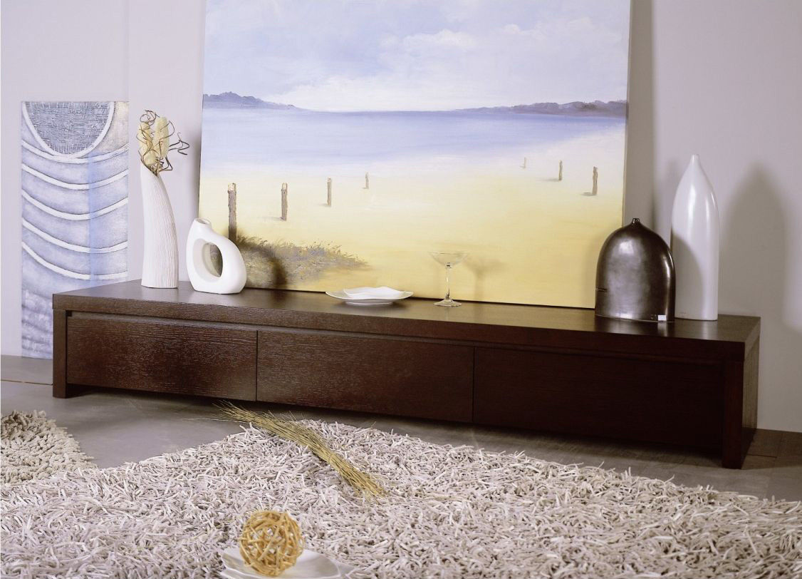 Slender oak veneer long wenge finish tv stand