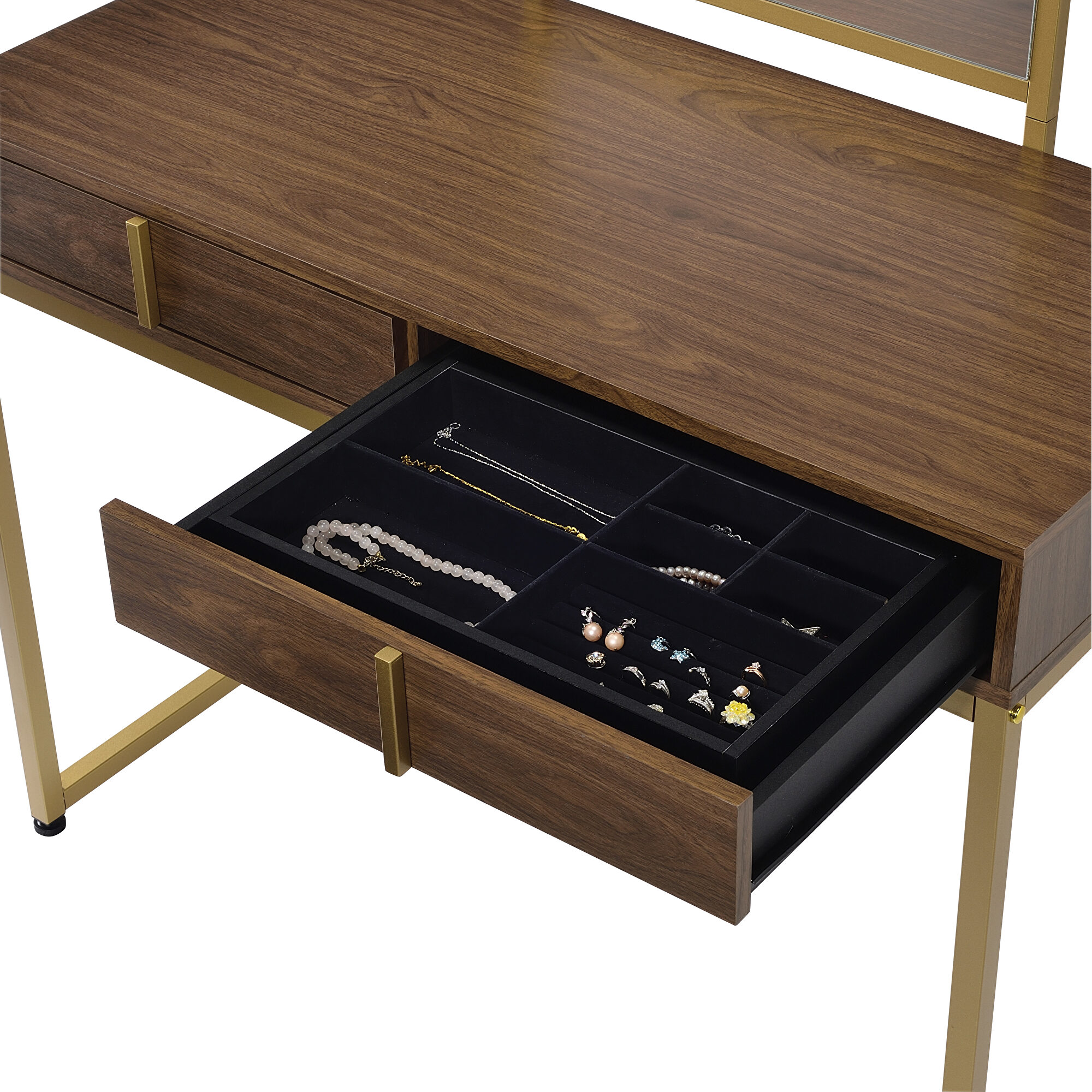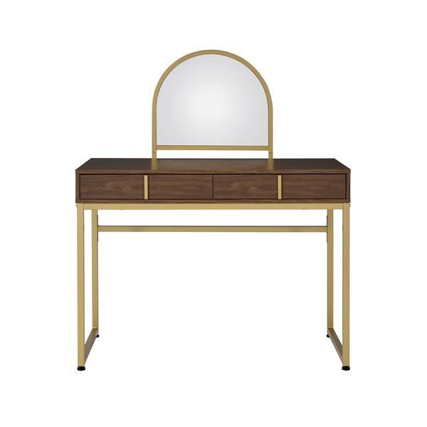 Coleen walnut and gold finish frame vanity desk